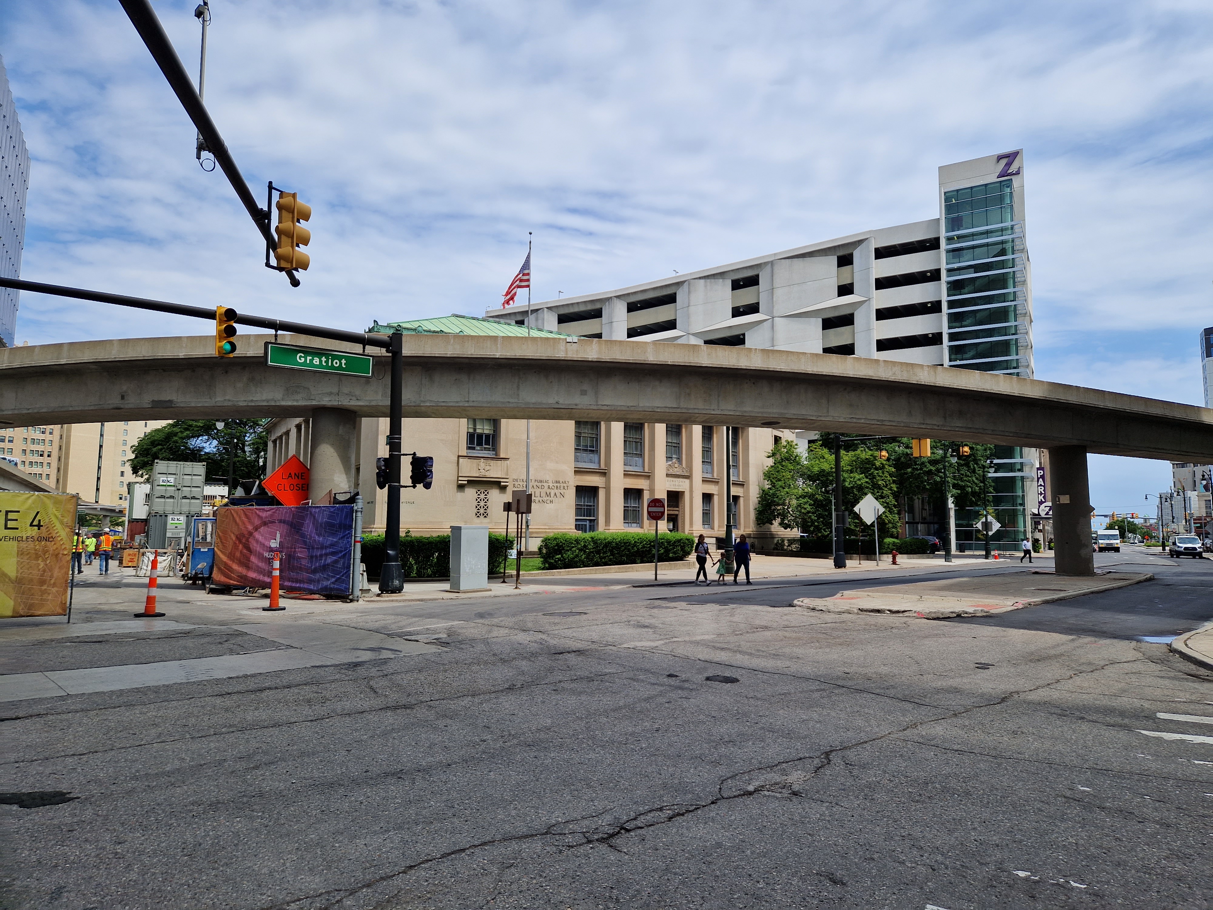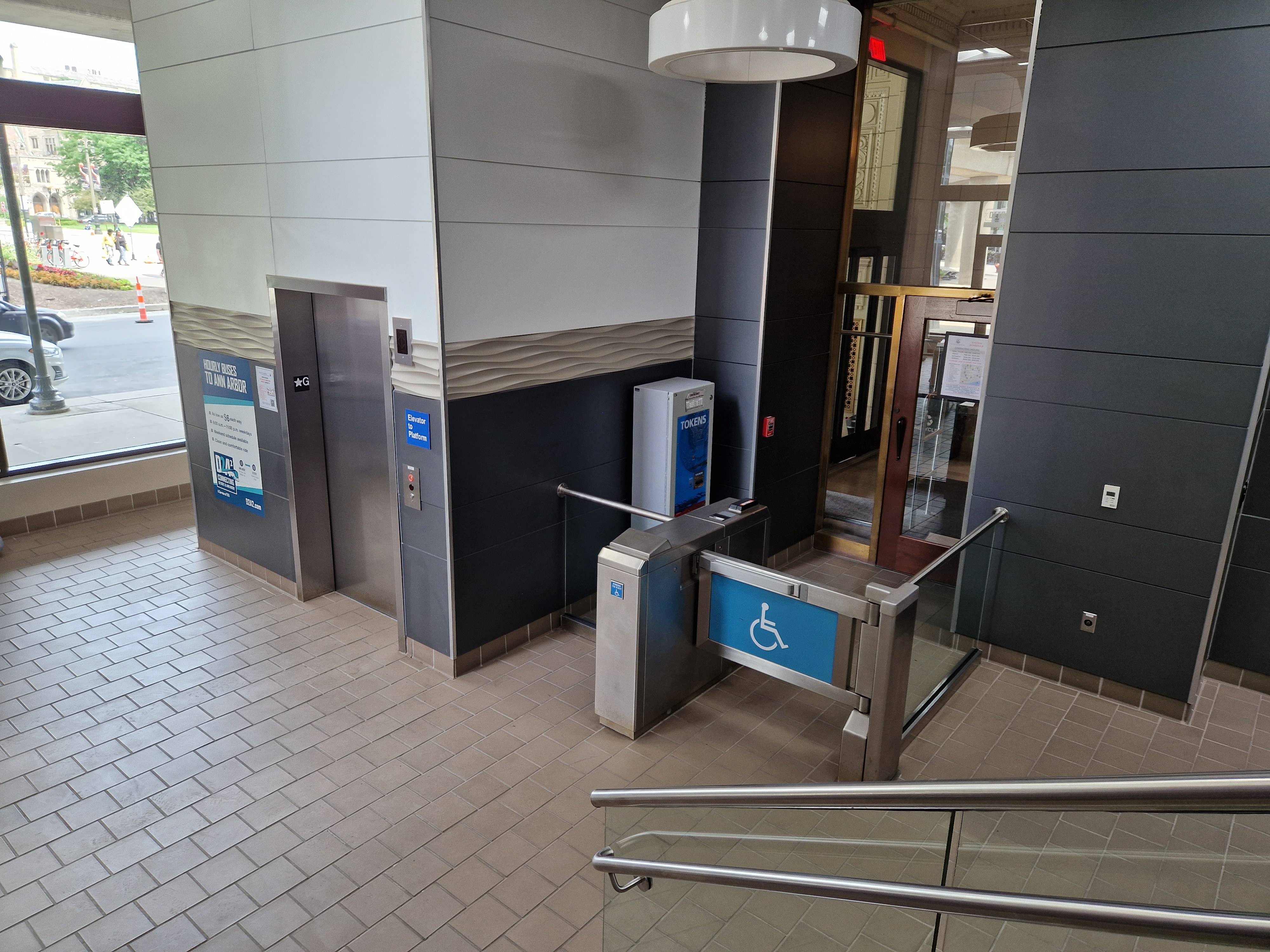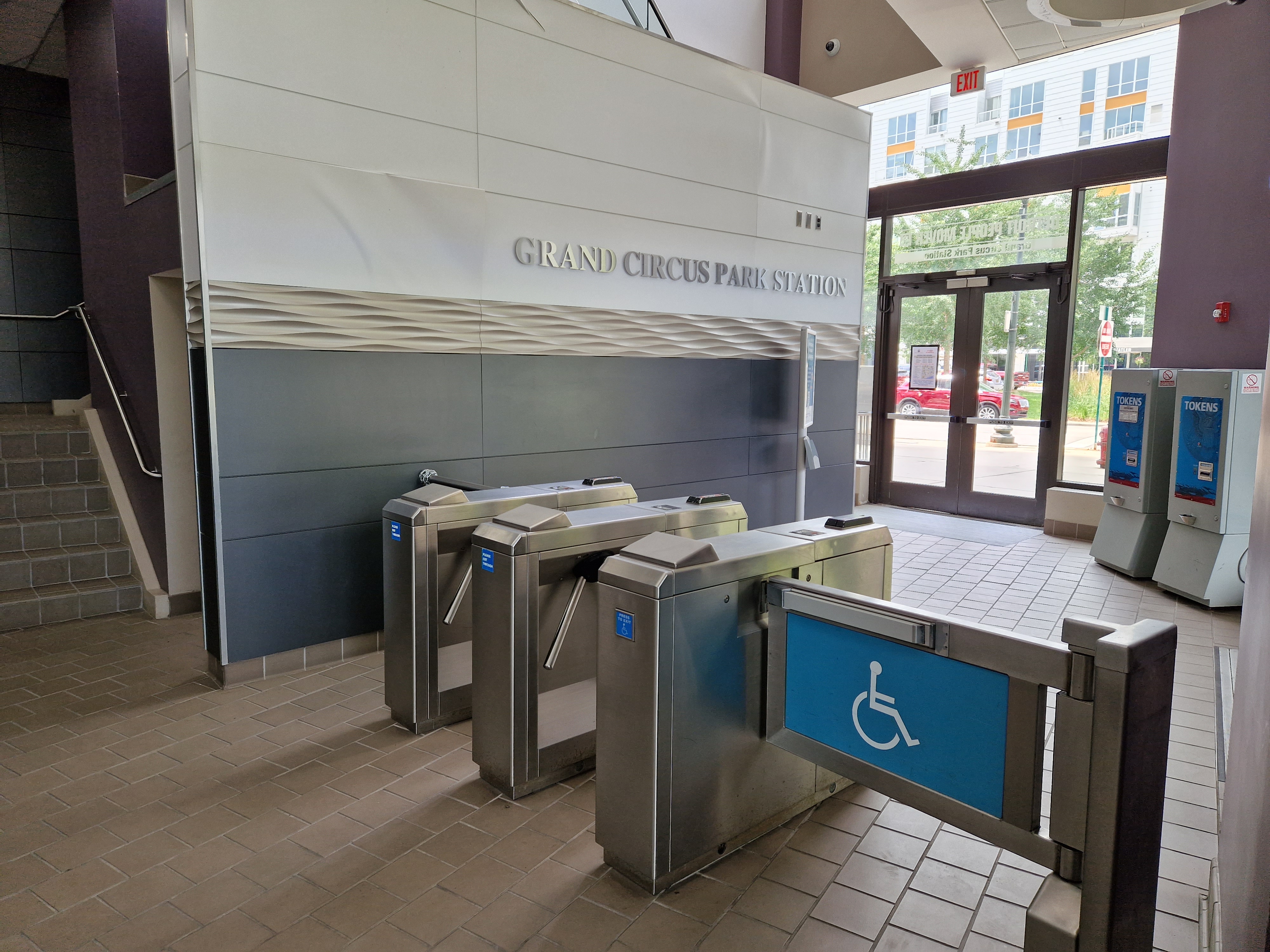 Надземная железная дорога, кольцо-однопутка, два автоматических вагончика ходят по часовой стрелке вокруг даунтауна, 4.73 км, около получаса на весь круг. Проезд - 75 американских копеек, либо монетами в турникет, либо жетончик в разменном автомате купить. Что интересно, городской трамвай при этом вообще бесплатный.