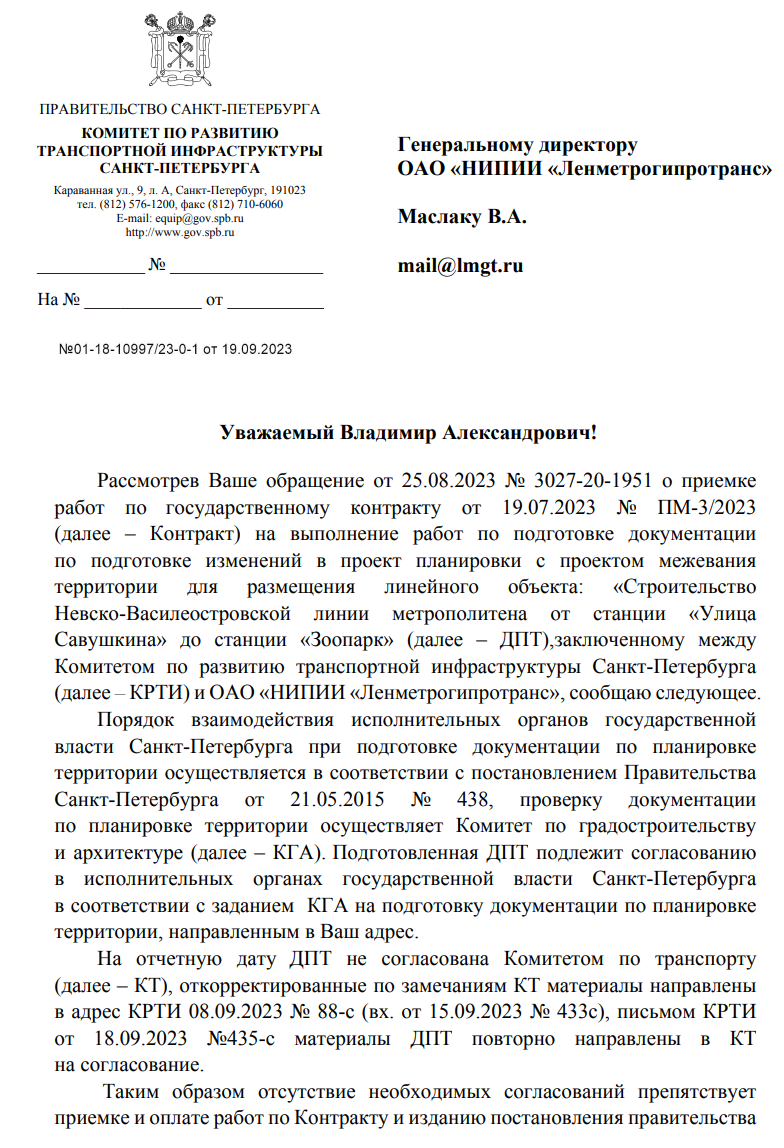 Опять КРТИ заводит рака за камень, пытаясь оттянуть оплату выполненных работ.