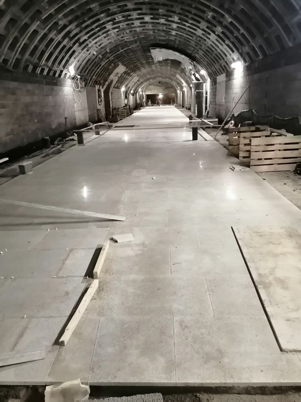 В общем копнул я поглубже. Было изменение в рабочей документации, под соусом "импортозамещение материалов". Вместо, как вы выразились, "поносного" Antica будет наш родной мрамор Калливолампи. На фото 100% он. На стене "под мостом" вместо Азурро Аквамарина будет бежево-серый Дипломат. Форму проема тоже немного переиграли, более арочная что-ли.