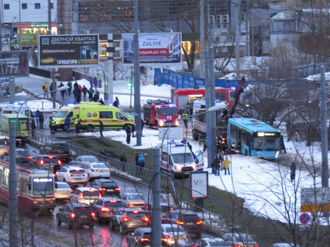 На Наличной автобус вылетел на тротуар и врезался в группу людей, 5 пострадавших, двое в тяжелом состоянии.