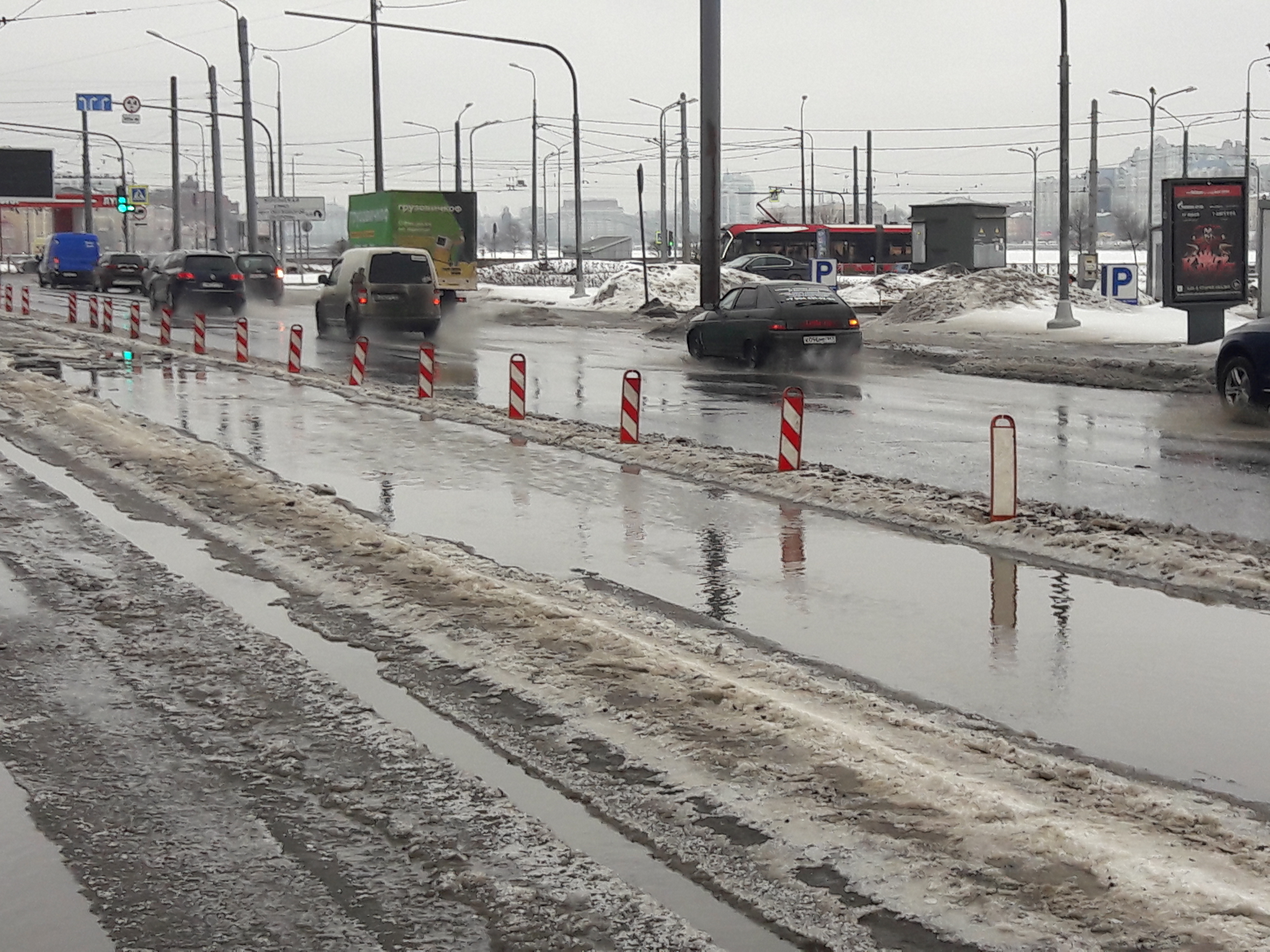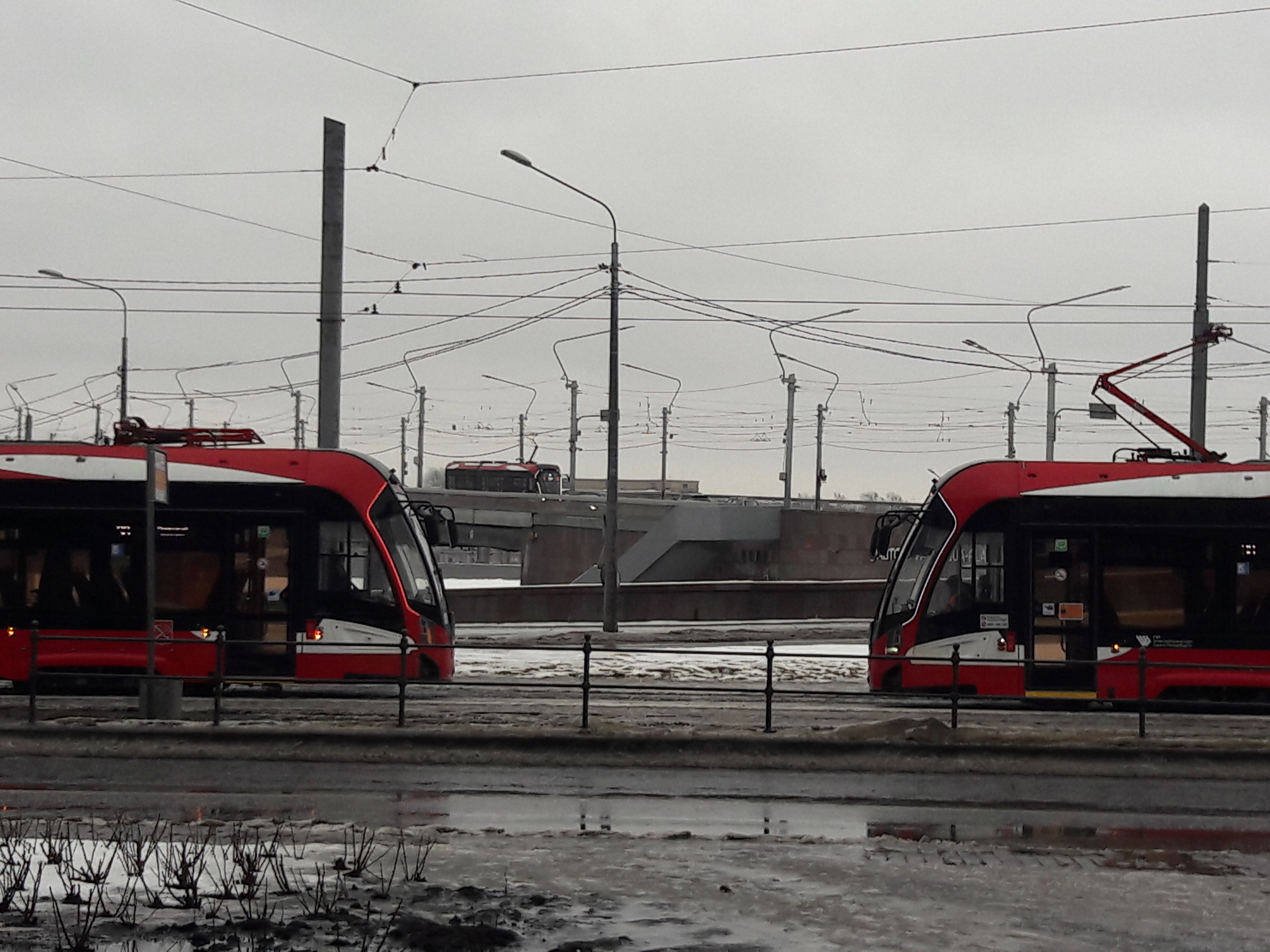 В другой части города, на съезде у ПлАНа встал 7777 из-за того, что впереди был слишком высокий уровень накопившейся воды. Через пол часа приехала техничка и делали ходы для воды. Через минут 20 вагоны поехали. Заблокированными оказались те, кто был в трамваях на мосту Александра Невского. Там не выпускали, поскольку проезжая часть. Там машины несутся очень быстро, и никто не ожидает там увидеть выходящих из трамвая.