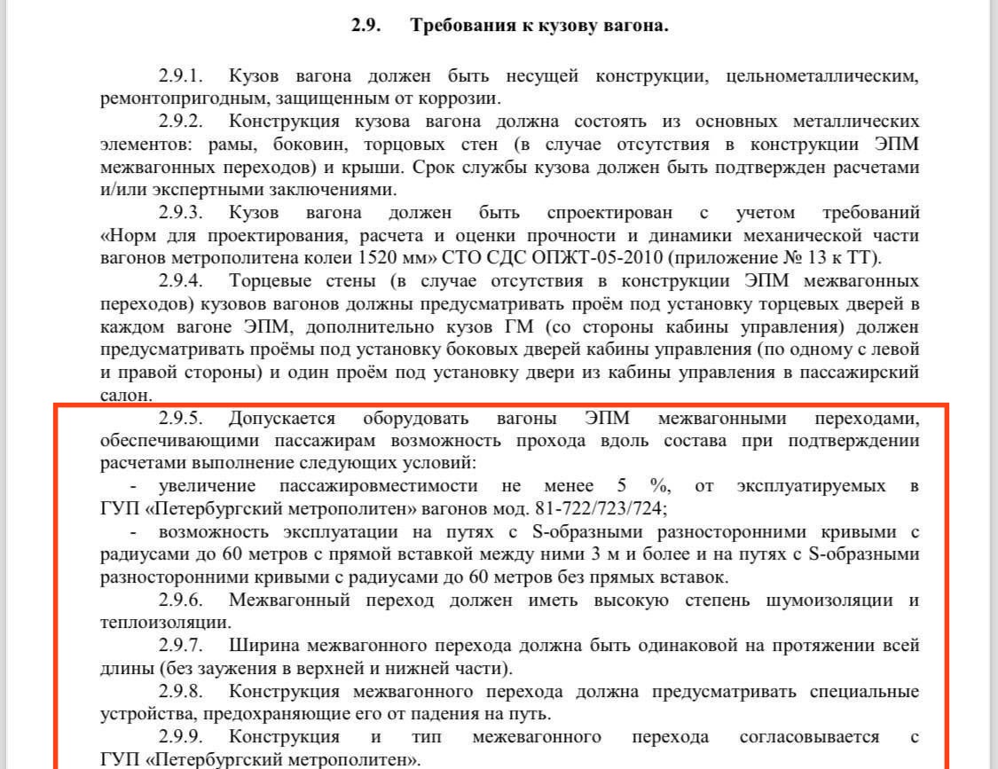 Ключевые слова - "в случае отсутствия в конструкции ЭПМ межвагонных переходов"