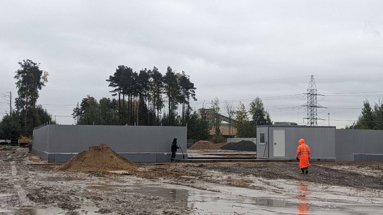 На демонтажном котловане за ст. «Каменка» Невско-Василеостровской линии метро продолжается обустройство площадки.
