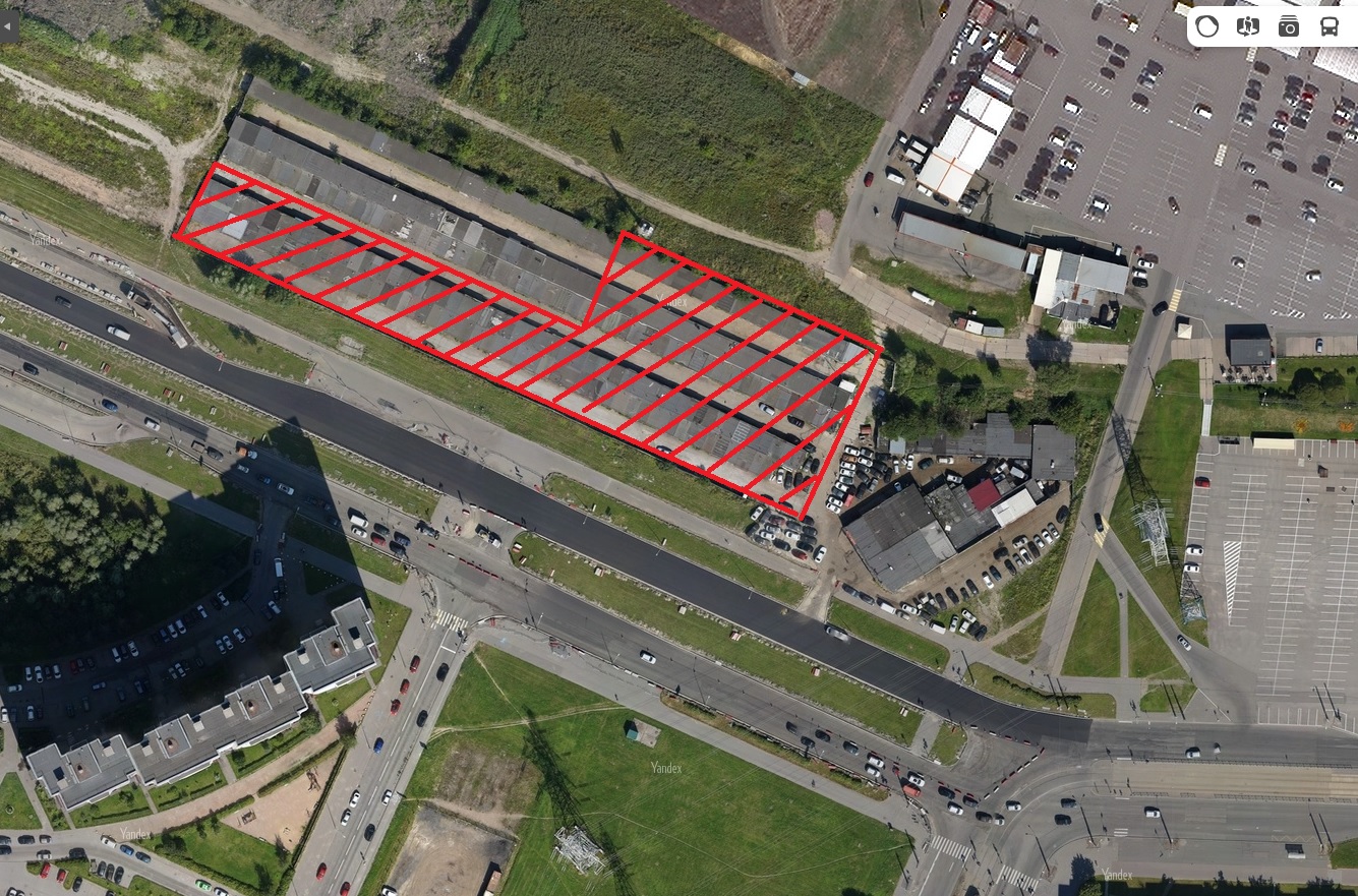 По состоянию на 08.12.2024г. демонтирована часть гаражей отмеченная красным