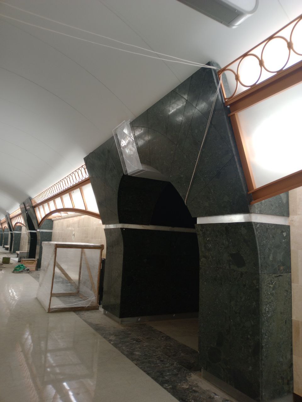 На первой картинке - декоративные элементы из оникса, которые монтируются в предусмотренные ниши обрамления пассажирских проёмов.
