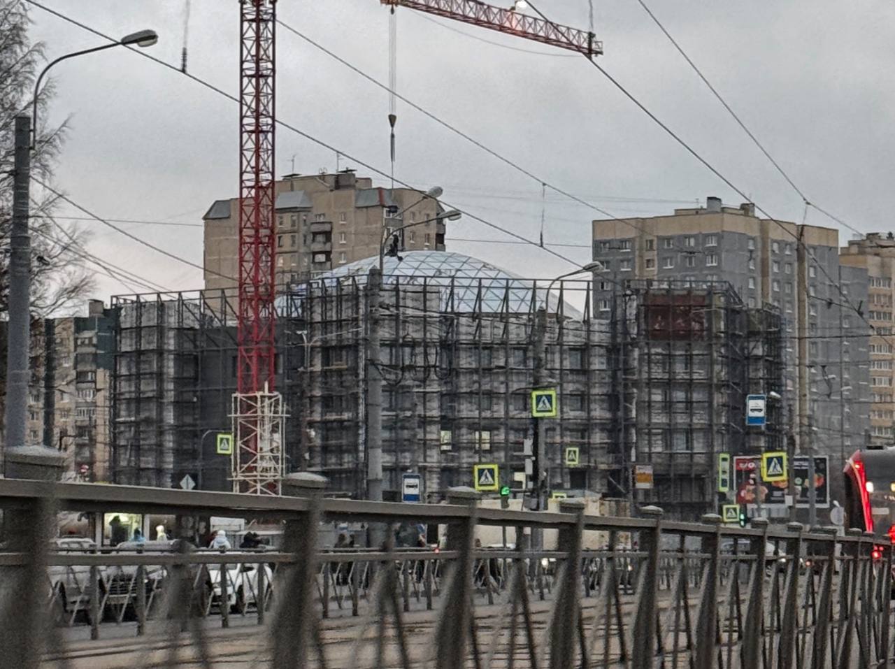 Одна из граней фальш-фасада вестибюля станции «Юго-Западная» строительства Красносельско-Калининской линии Петербургского метрополитена выглядит почти готовой.