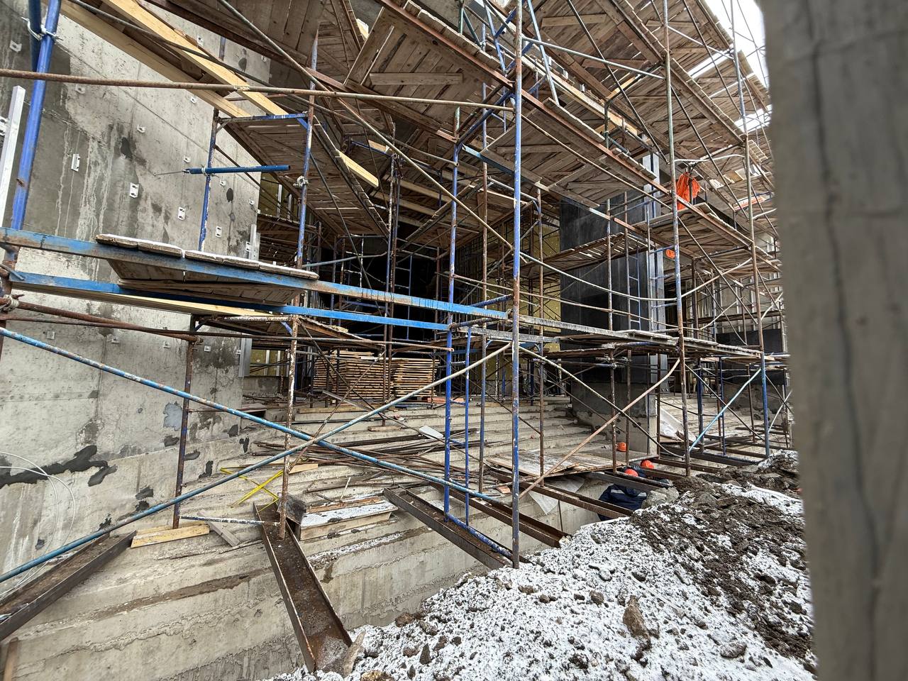 Продолжается отделка вестибюля. Устройство всех перекрытий завершено.