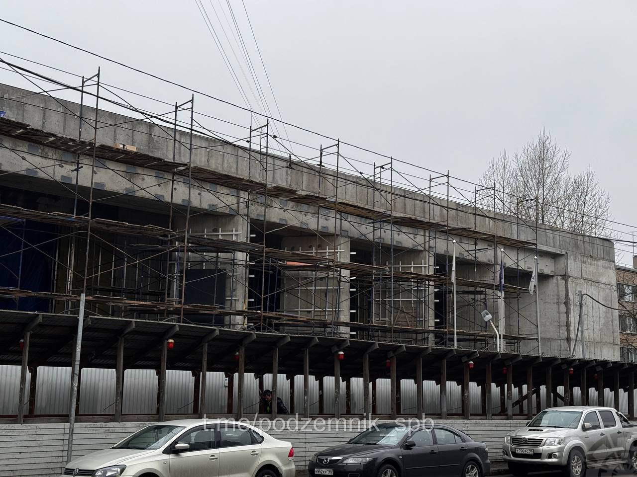 На строительстве вестибюля станции «Путиловская» Красносельско-Калининской линии Петербургского метрополитена продолжается отделка фасада вестибюля.