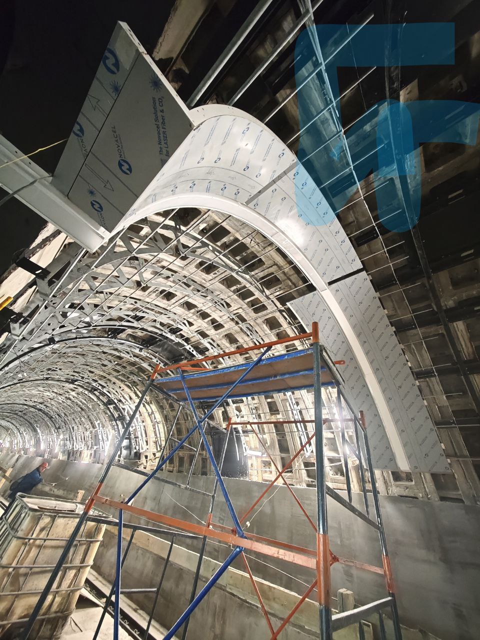 На строительстве Путиловской продолжается монтаж потолочного зонта в центральном зале.