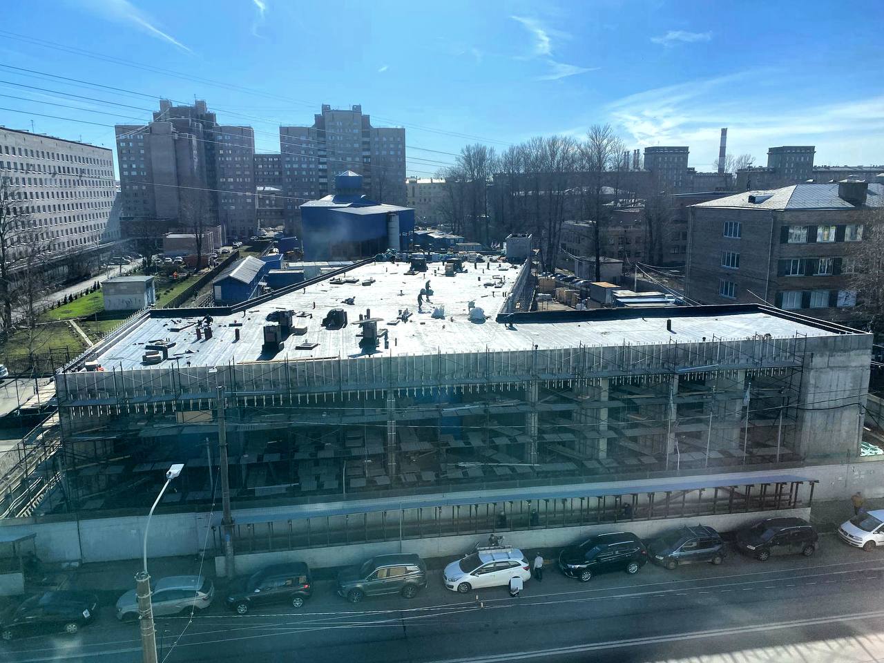 Завершаются работы по устройству гидроизоляции кровли здания.