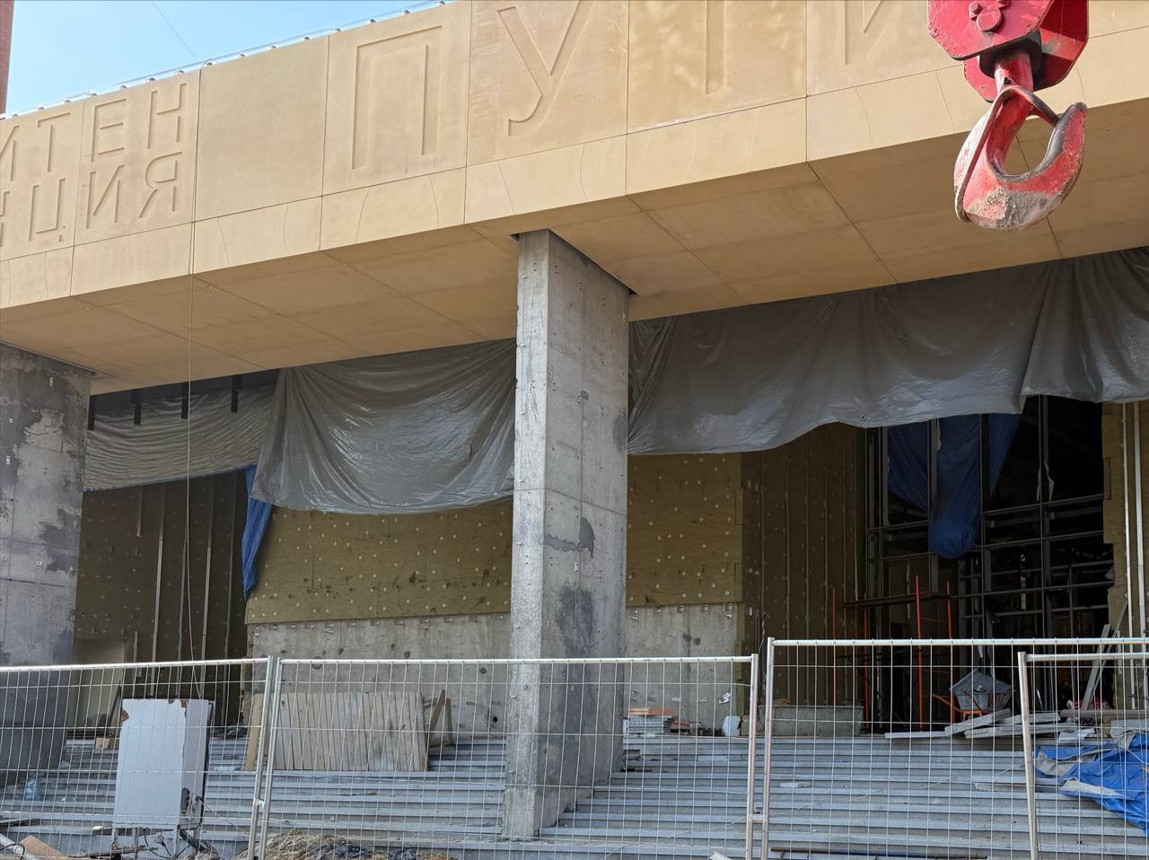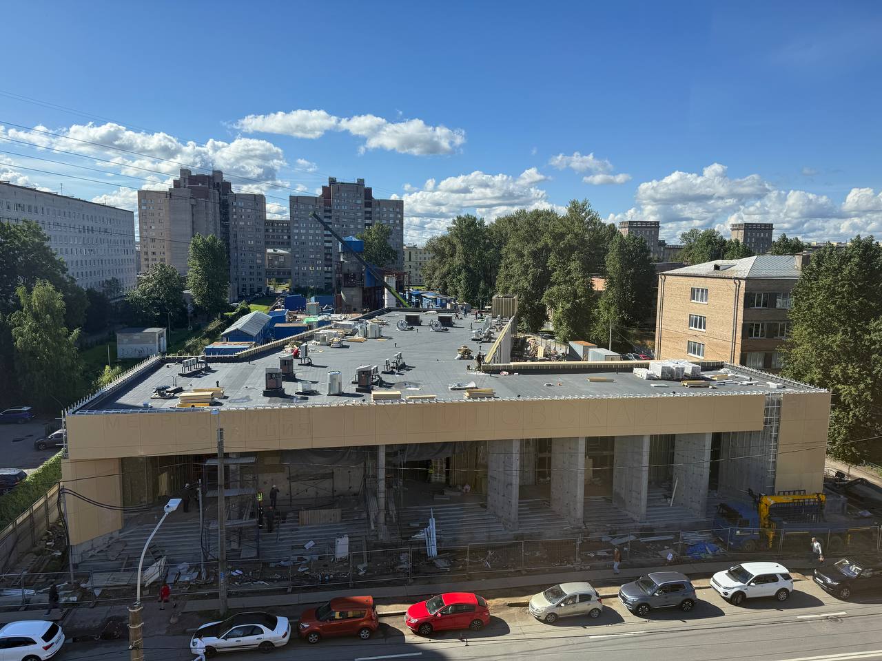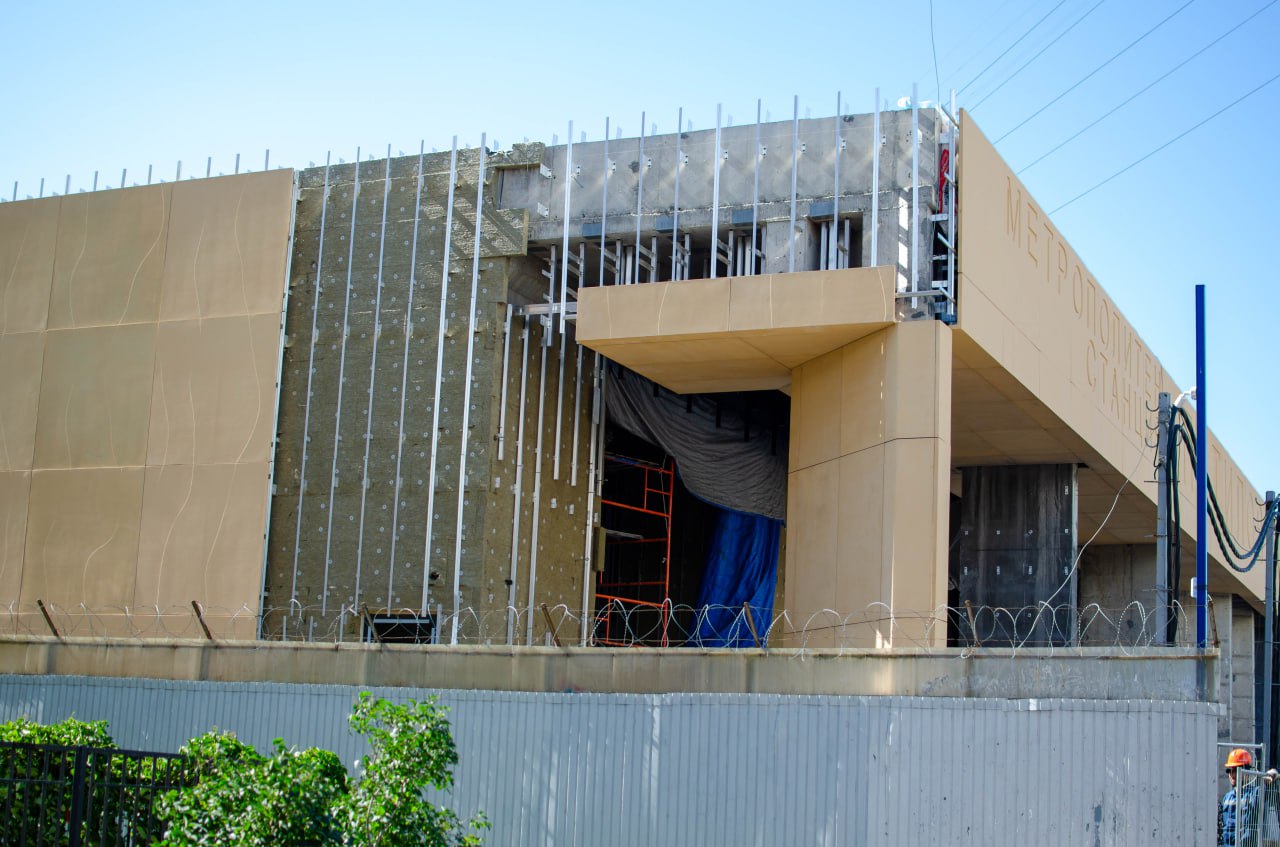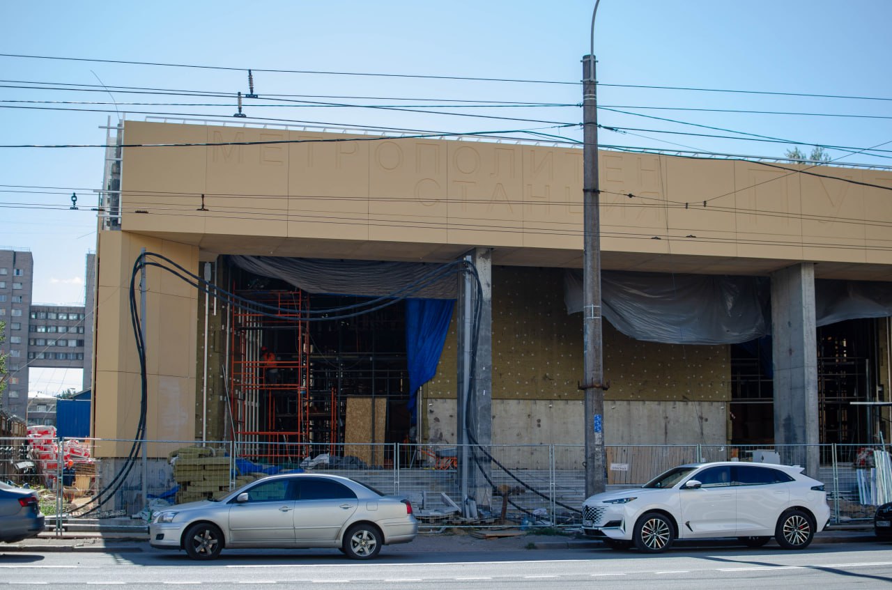 Параллельно продолжаются работы по монтажу серых фибробетонных панелей на фасаде со стороны улицы Маршала Говорова. Кроме того, выполнено подключение вестибюля к городским системам водоснабжения и канализации. Это означает, что в скором времени начнётся благоустройство прилегающей территории.