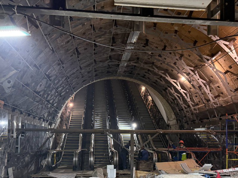 Продолжается установка эскалаторов в переходе.