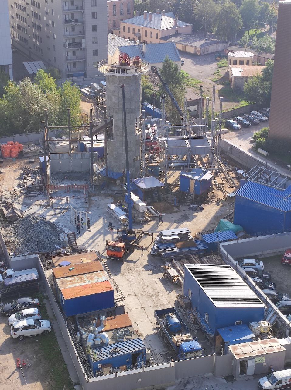 На строительной площадке шахты № 844 Красносельско-Калининской линии Петербургского метрополитена идут работы по демонтажу горного комплекса и сооружению верхнего вентиляционного узла. Через эту шахту строили пересадочный узел между «Путиловской» и «Кировским заводом».