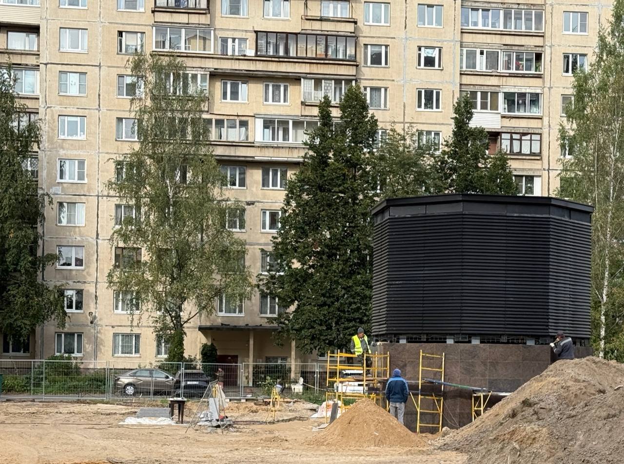 На строительной площадке вентиляционной шахты №841 Красносельско-Калининской линии Петербургского метрополитена идут работы по облицовке цоколя вентиляционного павильона, а также продолжаются работы по благоустройству прилегающей территории.