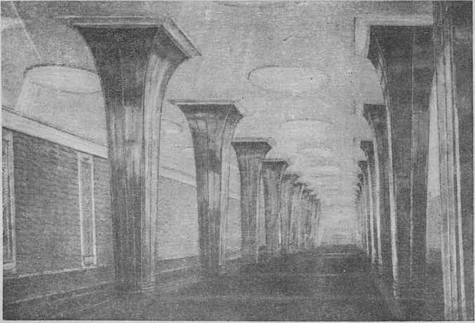 Разрез станции «Площадь Ленина». Некоторыми деталями (насколько это возможно разглядеть на таких мелких картинках) напоминает окончательный вариант