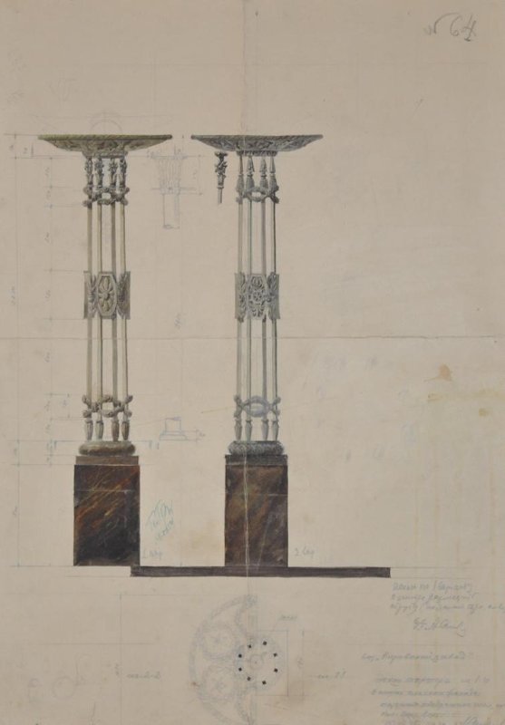 Торшеры для нищ вестибюля «Кировского завода», 1953. Ниши есть — а торшеров нет