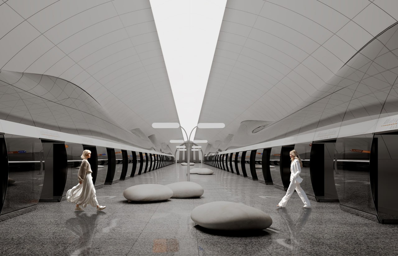 Крайне дебильное решение с установкой скамеек-камней в самой прохожей части станции, а не по бокам.