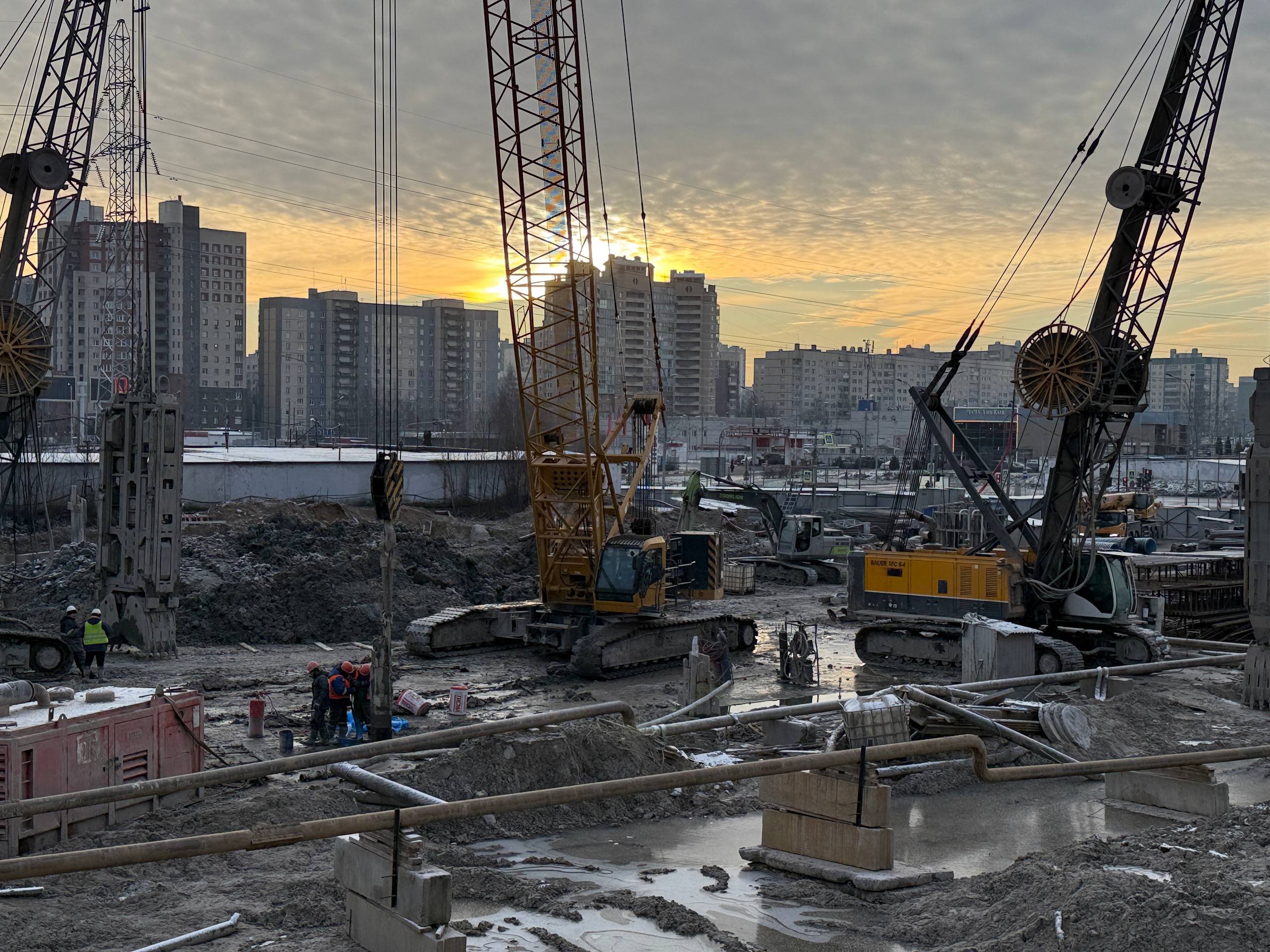Завершается работа по понижению уровня основной строительной площадке, которая располагается на участке от перекрёстка Шуваловского/Комендантского проспектов до подъездной дороги к гипермаркету «Лента».
