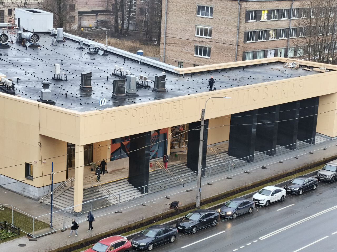 На строительной площадке вестибюля станции «Путиловская» Красносельско-Калининской линии метрополитена Петербурга завершены фасадные работы.