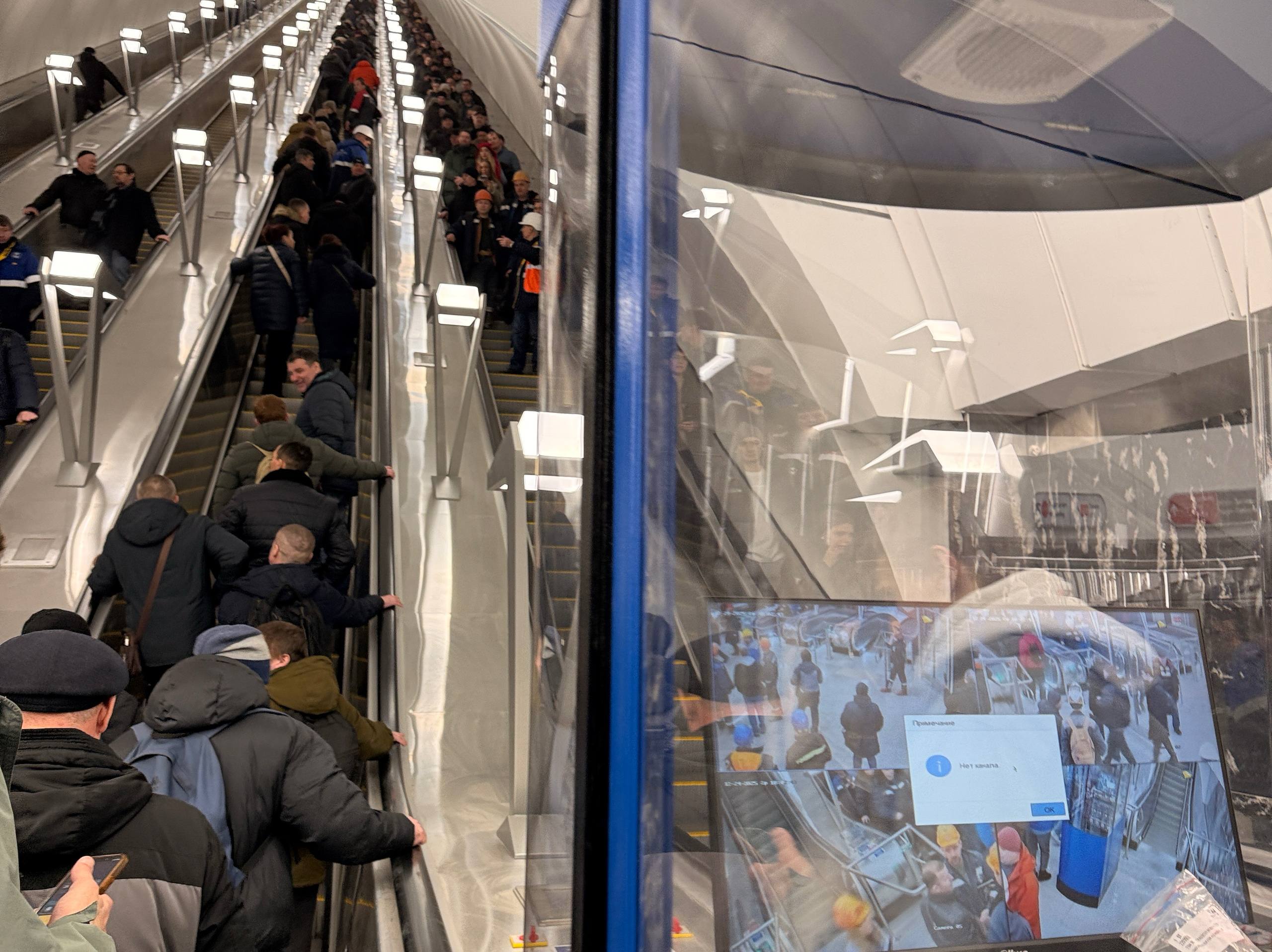 Испытание эскалаторов под нагрузкой сотрудниками МСС.