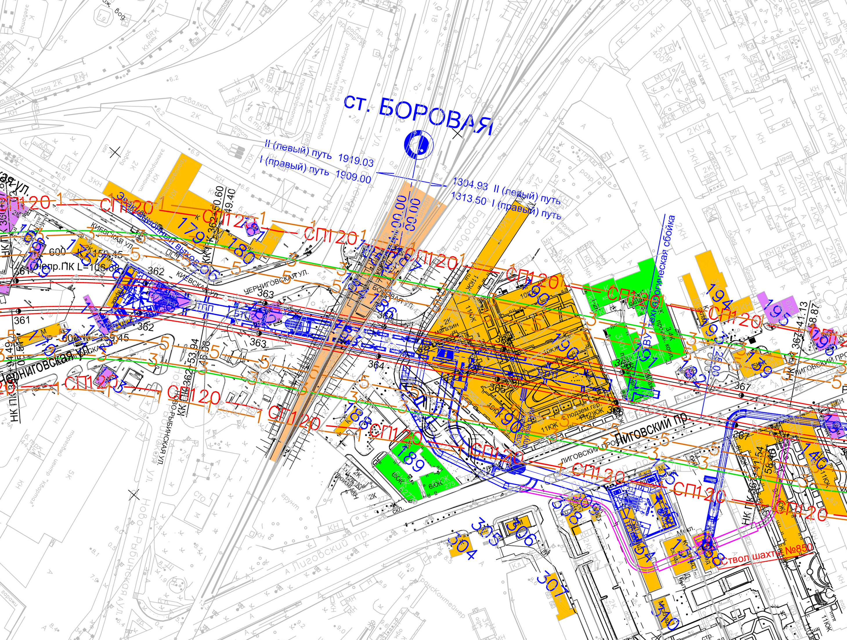 планировка станционного комплекса Боровой. Как видим, как и на всём втором участке ККл, увеличили количество проходов до десяти в каждый БСТ.