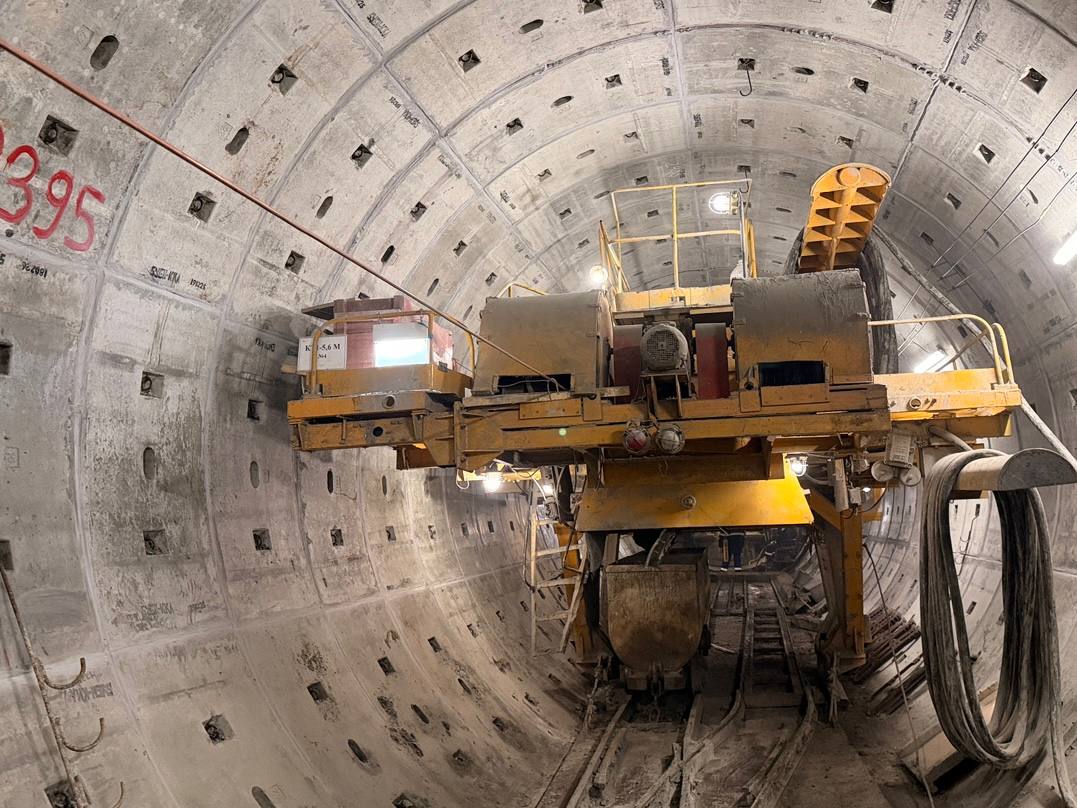 Тоннелепроходческий щит, начавший проходку второго пути 14 февраля 2024 года, уже преодолел отметку в два километра. Комплекс успешно миновал станцию «Броневая» (3-4 фото) и движется к «Заставской». На данном этапе от «Броневой» в сторону следующей станции пройдено уже около двухсот метров (1-2 фото) тоннеля из тысяча восьмисот метров.
