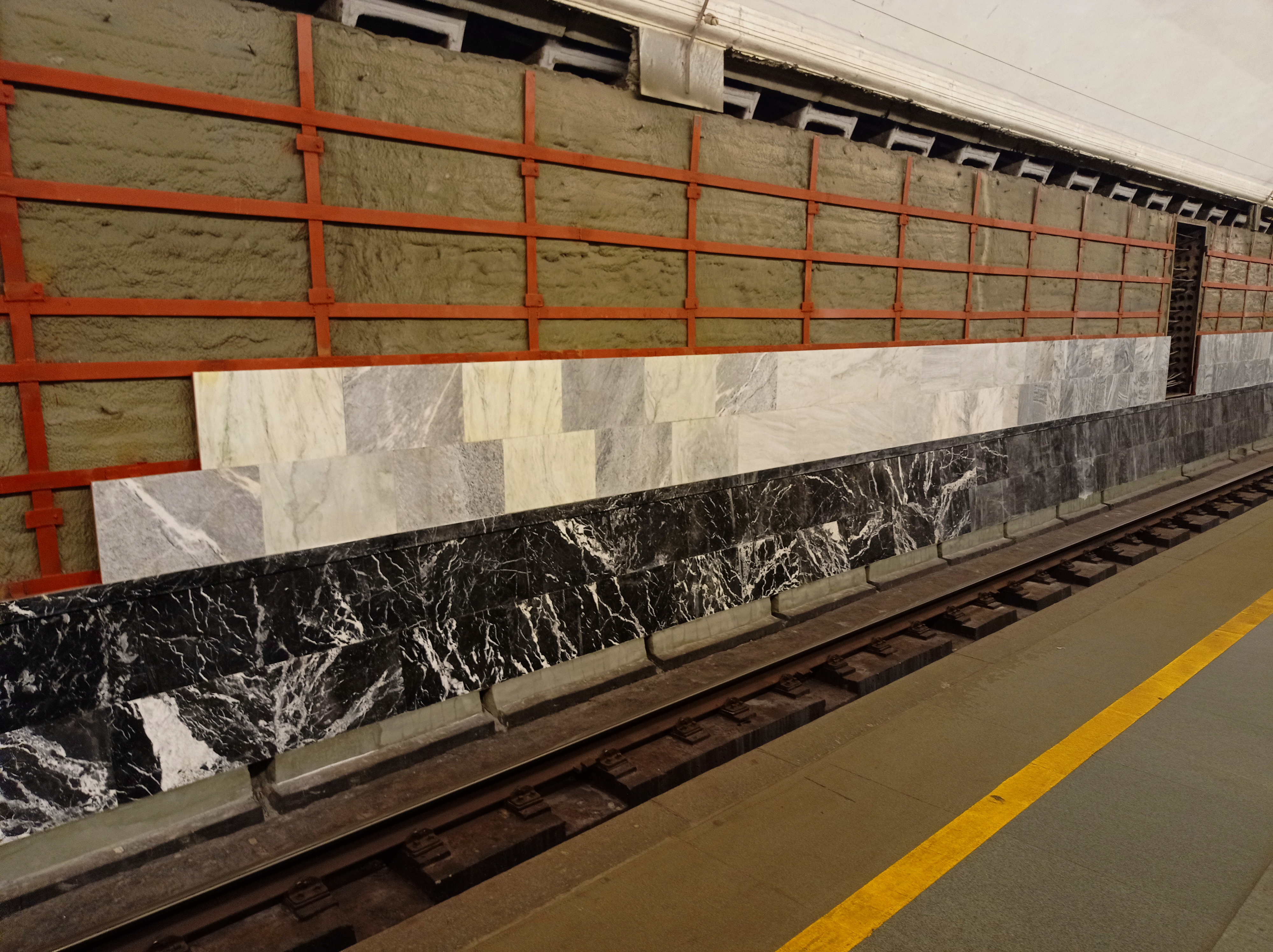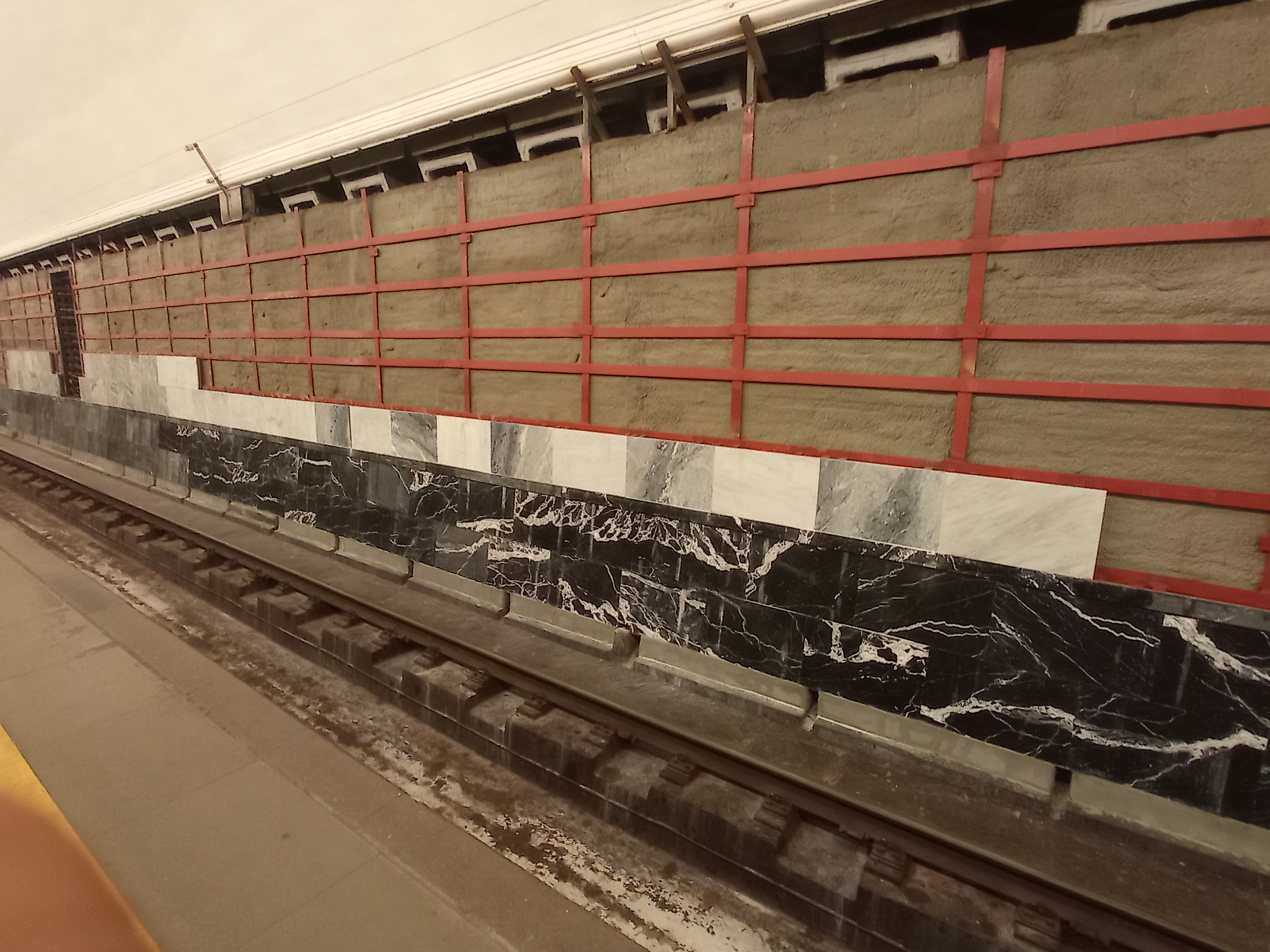Состояние путевых стен станции на вчерашний день. С чего они решили на пол путевой стены класть белую плитку?