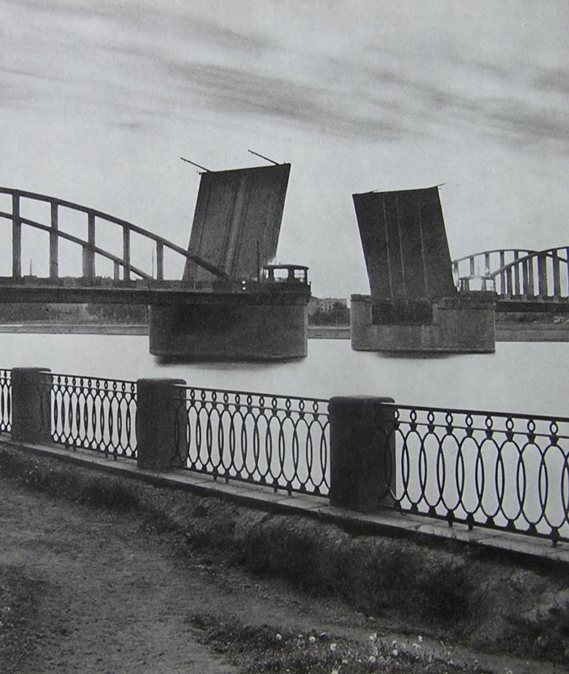 Памятник В.Володарскому (1925, скульпторы М.Г.Манизер и Л.В.Блезе-Манизер, архитектор В.А.Витман) у строящегося Володарского моста (1932-1936, инженеры Г.П.Передерий и В.И.Крылов, архитекторы К.М.Дмитриев и А.С.Никольский) на берегу Невы.