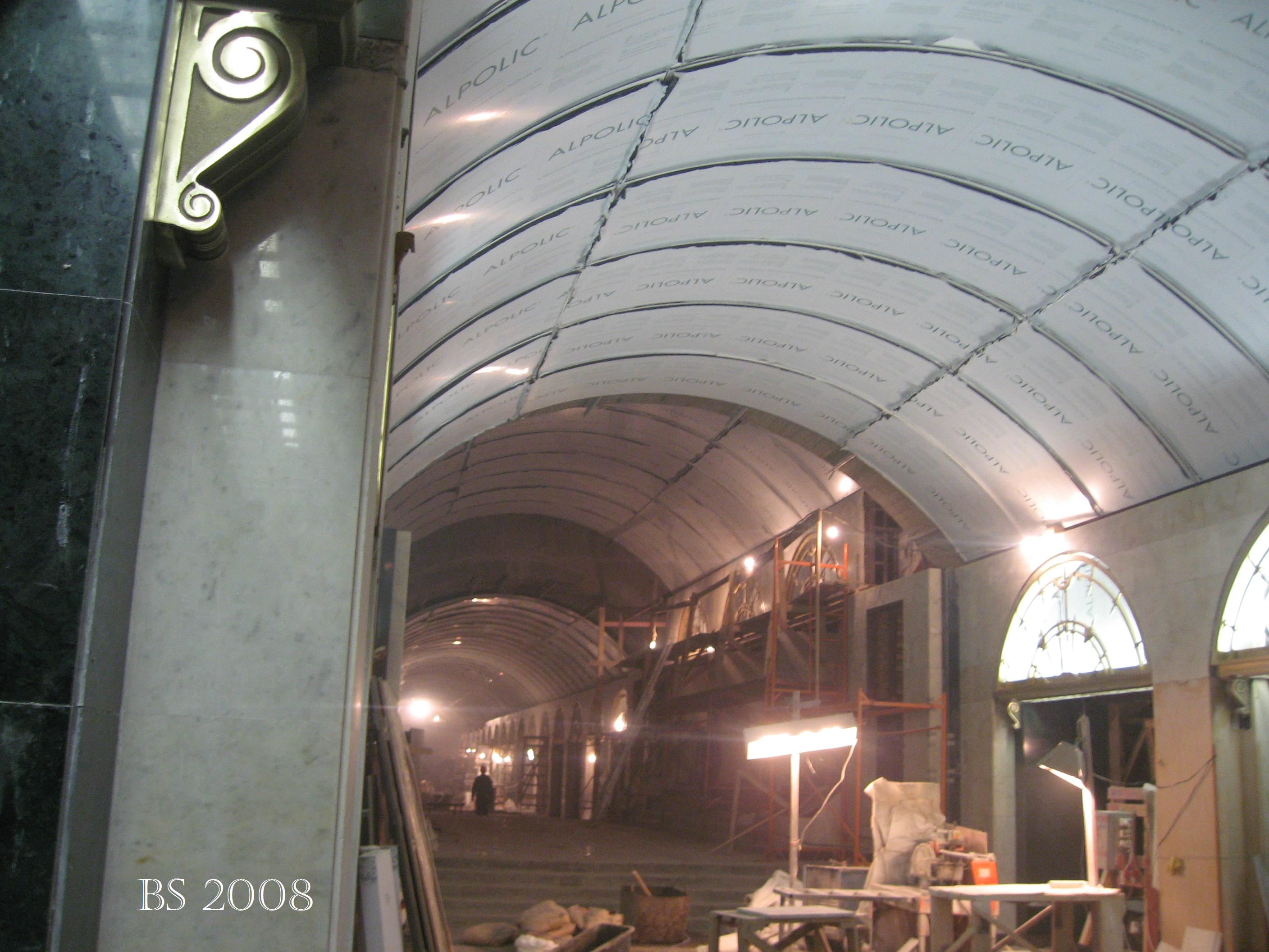 Симпатичный будет потолок.Чистый,белый,как на Волковской.Там уже поснимали пленку с потолка.