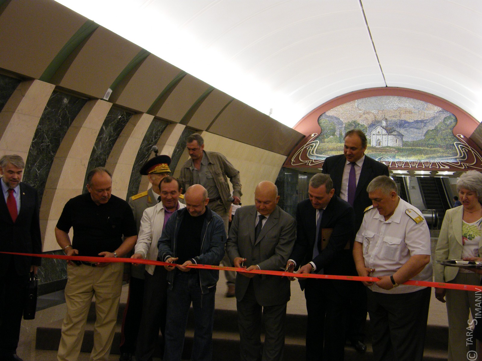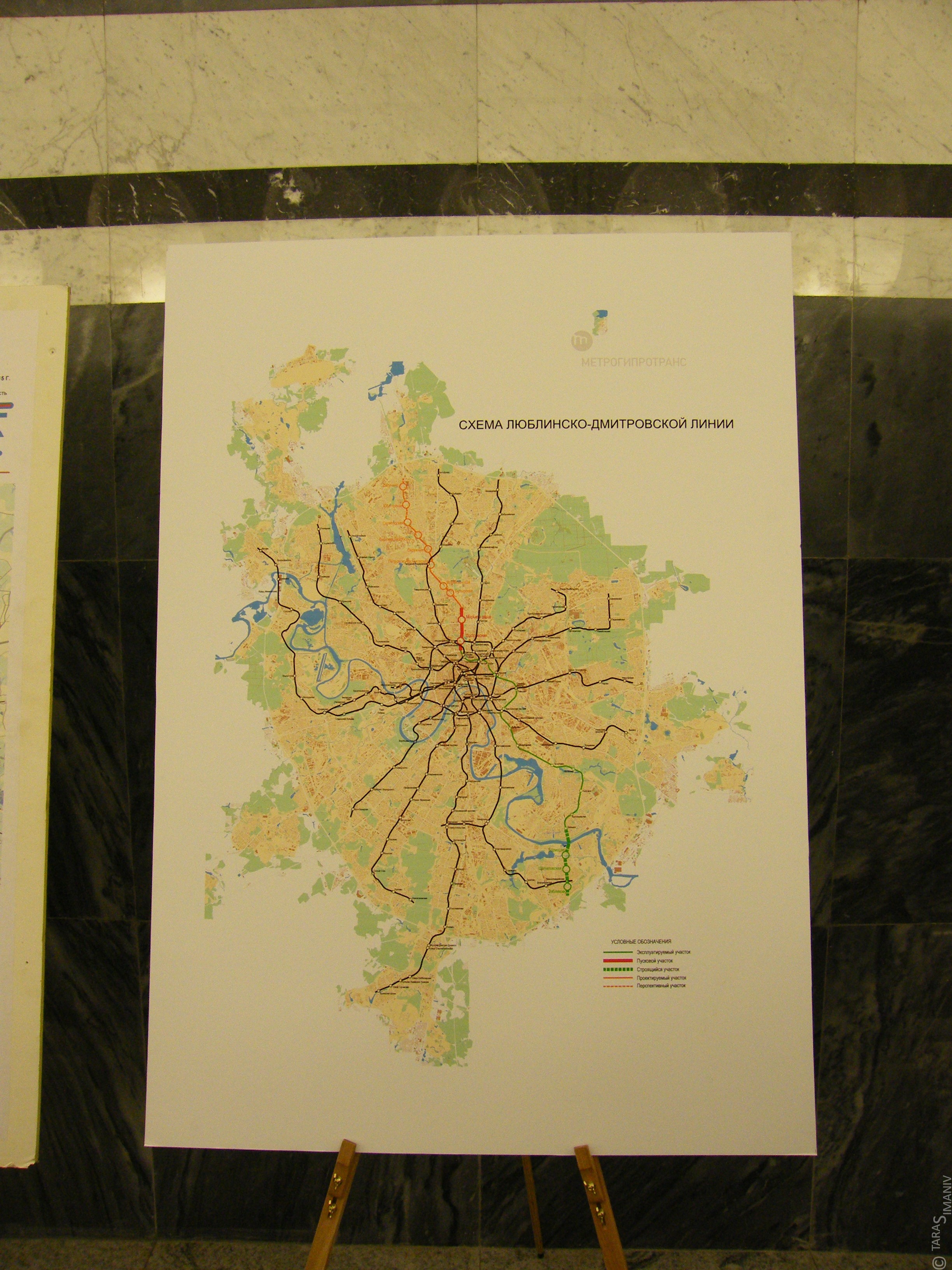 Наконец-то появилась делегация (примерно в 12:35). Дмитрий Владимирович показывает Юрию Михайловичу как лучше провести Люблинско-Дмитровскую линию