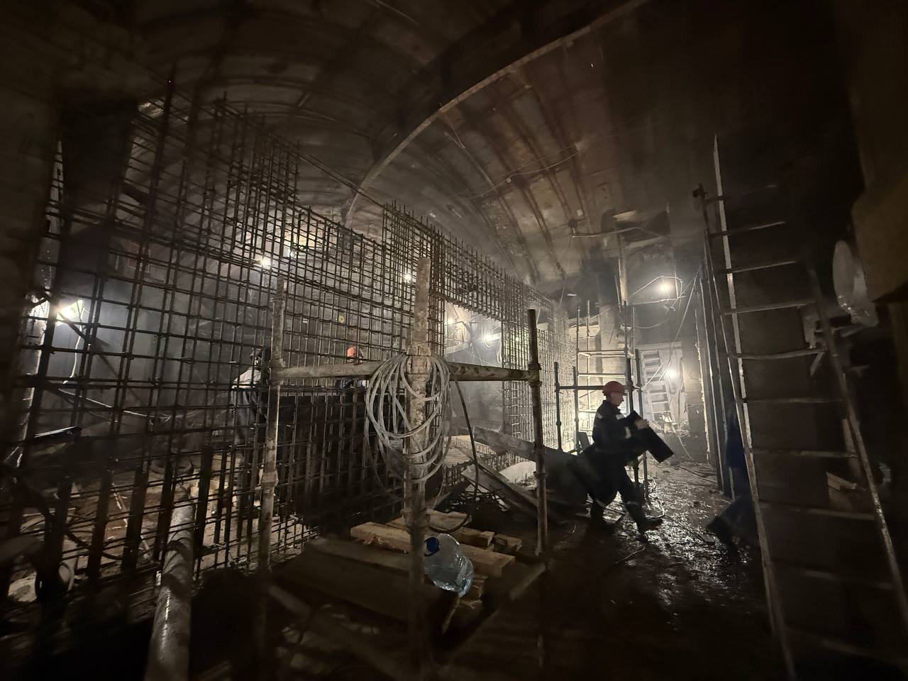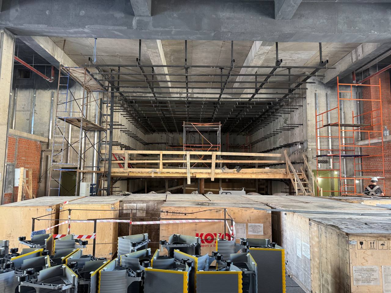 На строительстве вестибюля станции «Путиловская» Красносельско-Калининской линии Петербургского метрополитена продолжаются работы.