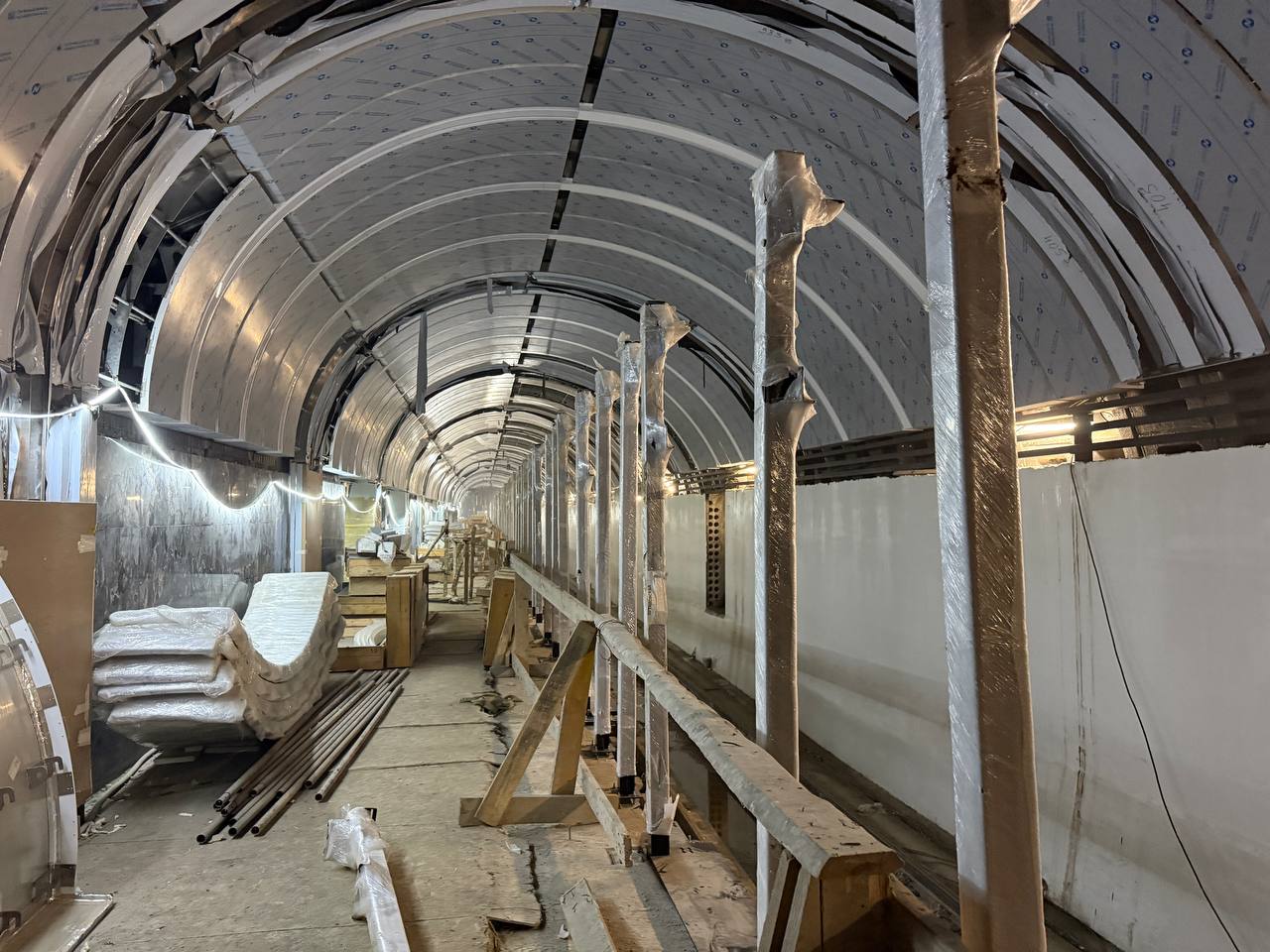 В переходе продолжается установка эскалаторов.