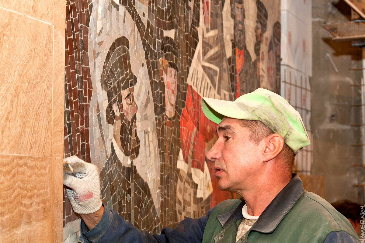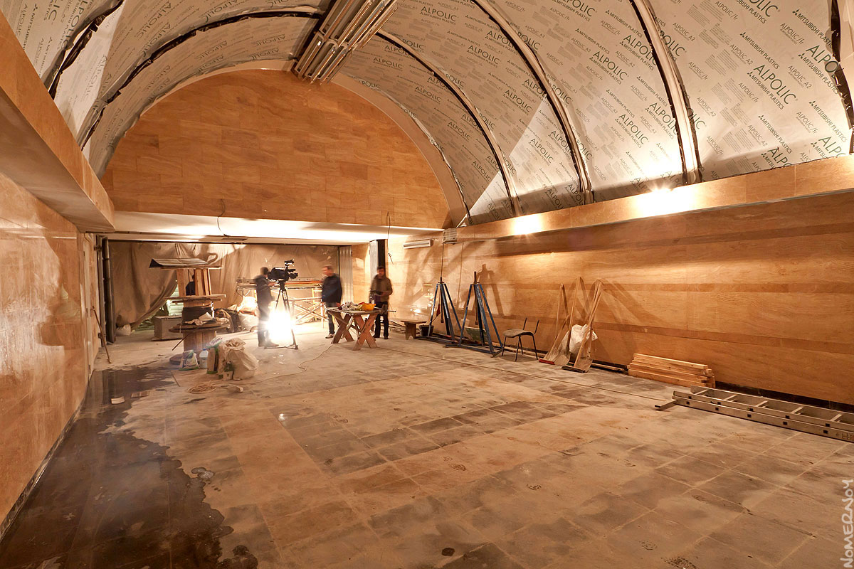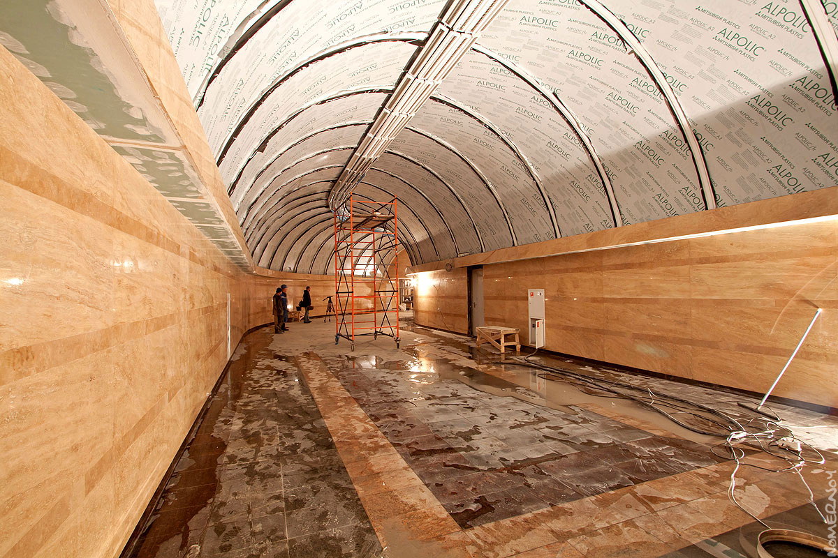 Алексей Старков, главный инженер:«Из предыдущих пусков, когда у нас были нарекания, сейчас делается полировка камня. Она будет не такая скользкая. На входных-выходных будет делаться насечка, а в залах делается полировка более грубая, чтобы не было скольжения».