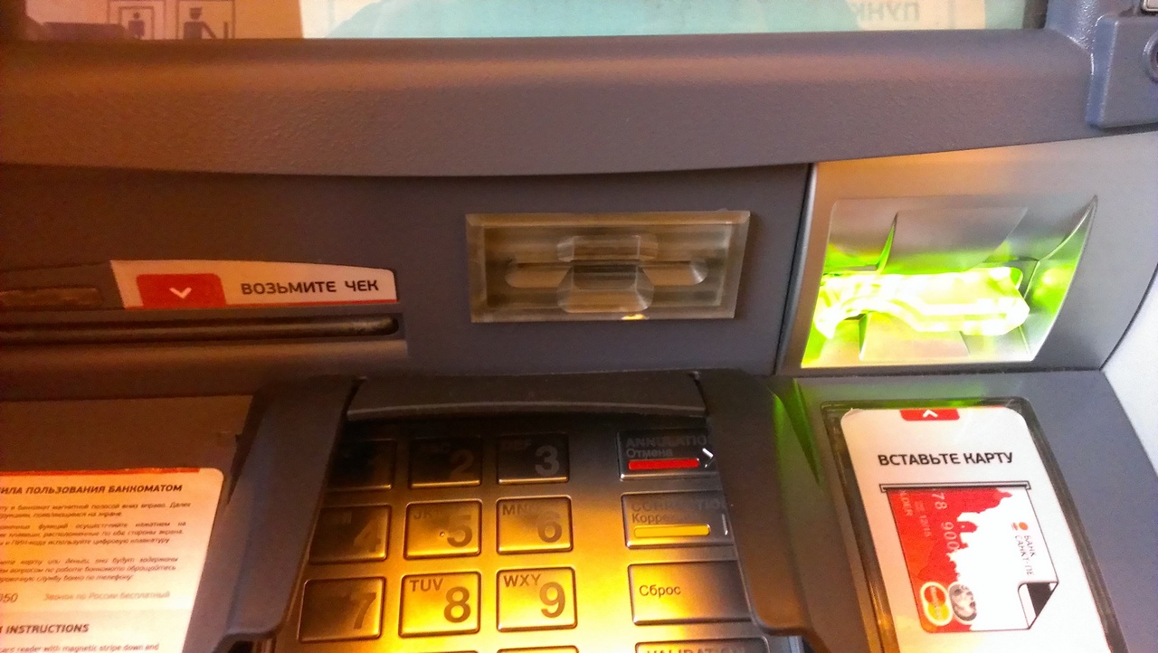 3) Если это была карта Банка СПб - банкомат её выплёвывает и просит вставить в спецслот, иначе просит вставить БСК в спецслот