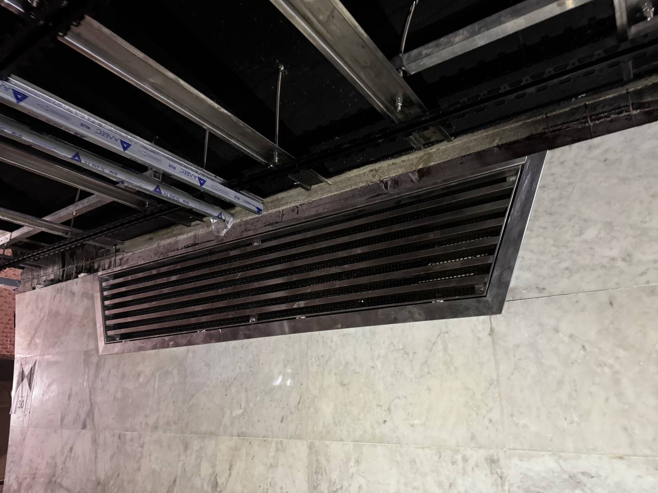 В пассажирских проёмах из сст в бст на Юго-Западной установили декоративные решетки вентиляционных труб.