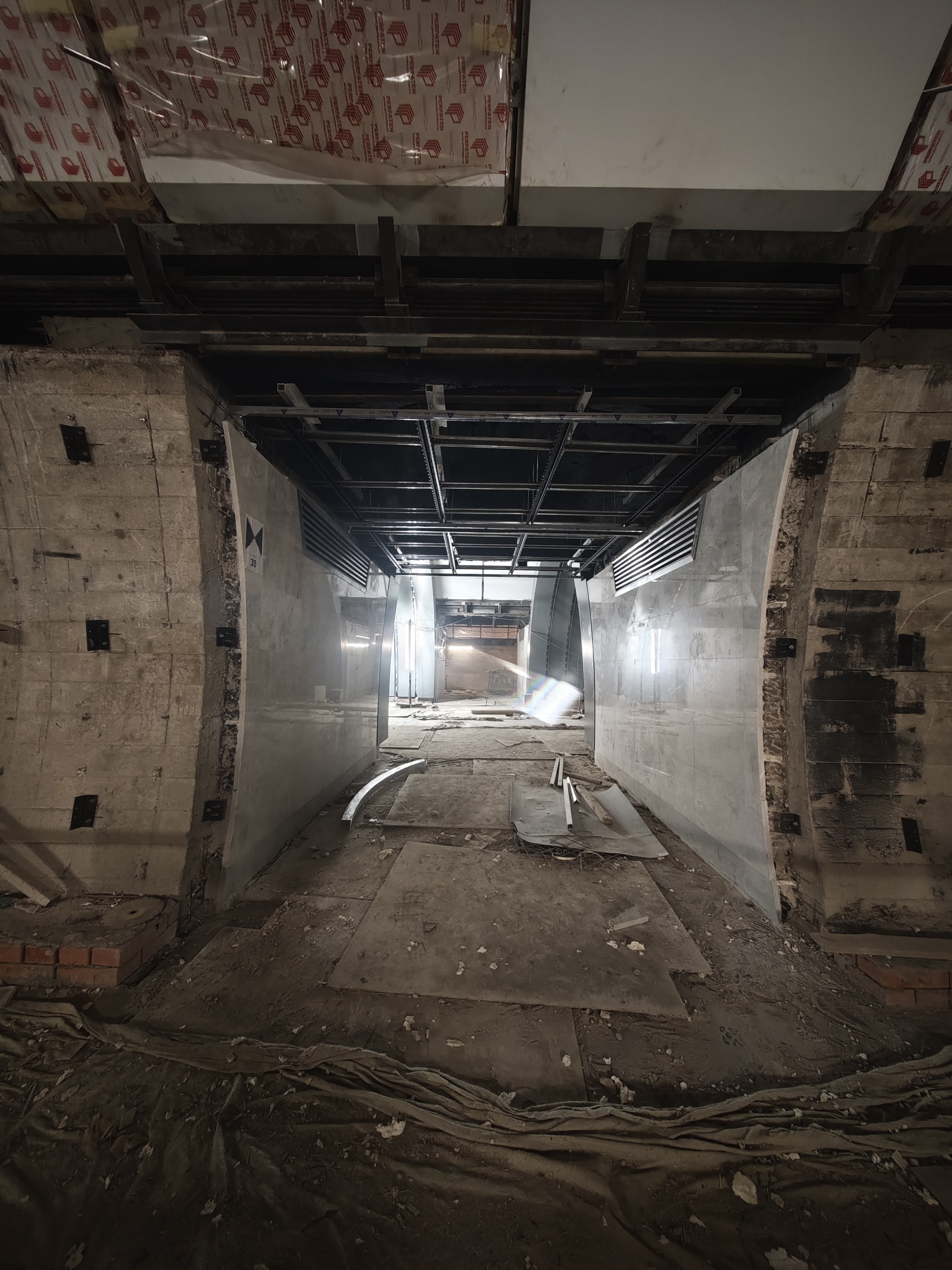 Внутри помещений инженерного корпуса метрополитена продолжаются отделочные работы, в той или иной степени выполнена отделка цокольного и 1-3 этажей, на 4 проступают к кладке внутренних перегородок, на 5 этаже завершается сооружение верхнего перекрытия.