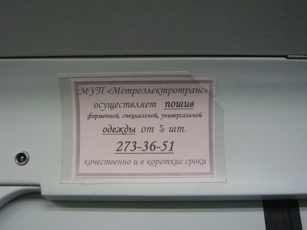В вагоне много рекламы на листках А4. Метрополитен зарабатывает даже курсами вождения.