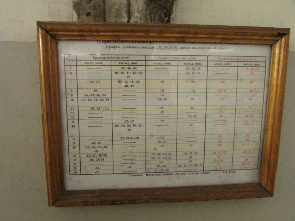 Актуальное расписание по ст. Автово. Сфотографировано 9 мая 2015 г.