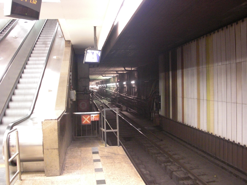 Это не совсем монитор. На самом деле, это просто экран, изображение на которых проецируется с аппарата, установленного над платформой. Очень интересная, кстати, идея, думаю, гораздо дешевле и практичнее, чем ставить панель такого размера. Кроме того, можно действительно гонять рекламные ролики. Я видел такую штуку не только на стации Muzeum.