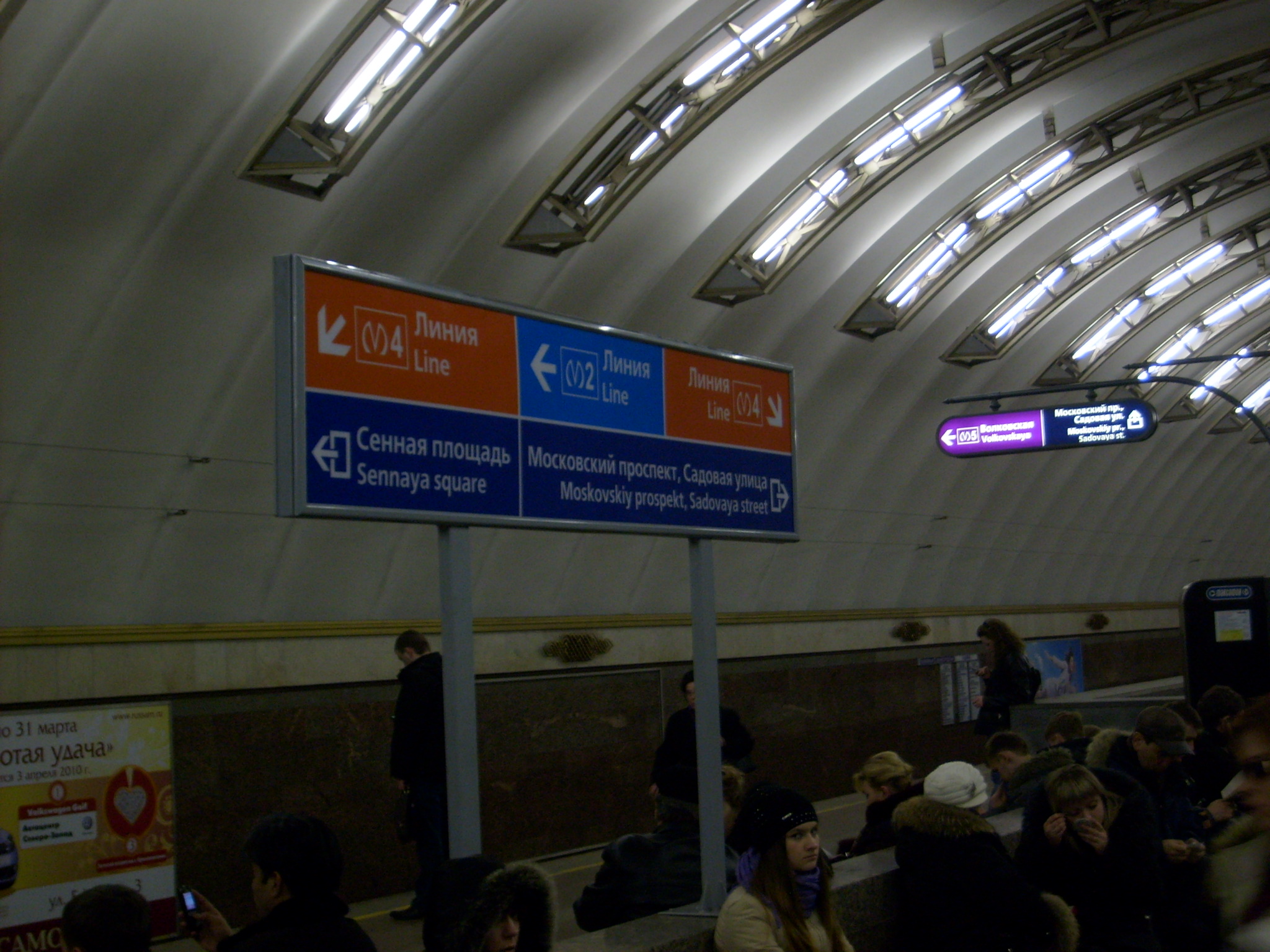 Вообще странно, что бабка запуталась в том как ей пройти на «Сенную площадь», ведь что-что, а этот указатель указывает правильно, более того выход в город на Сенную площадь НИПовцы предусматривали только через одноимённую станцию, так что все указатели с надписью «Сенная площадь» должны указывать в одном направлении.