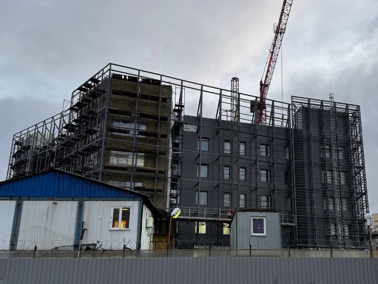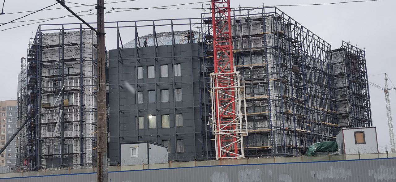 На строительстве вестибюля станции «Юго-Западная» Красносельско-Калининской линии Петербургского метрополитена продолжаются работы по монтажу вентилируемого фасада здания и фальш-фасада.