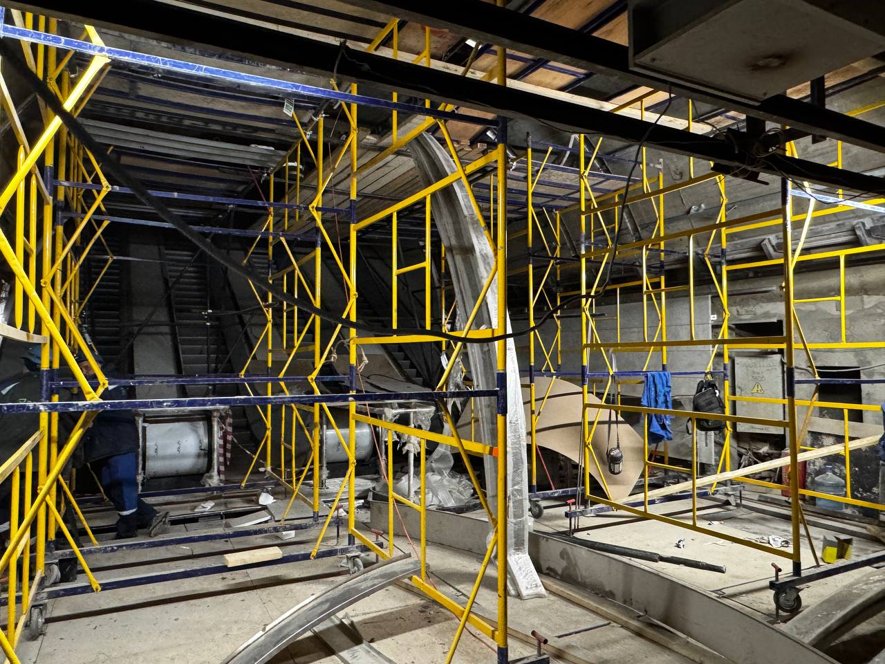 Начинается монтаж потолочного зонта в натяжной ЮЗ.