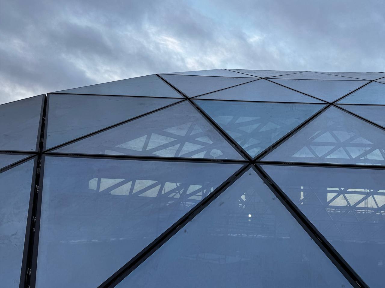 На строительстве вестибюля станции «Юго-Западная» Красносельско-Калининской линии Петербургского метрополитена выполнено остекление конструкции купола внутреннего атриума инженерного центра метрополитена.