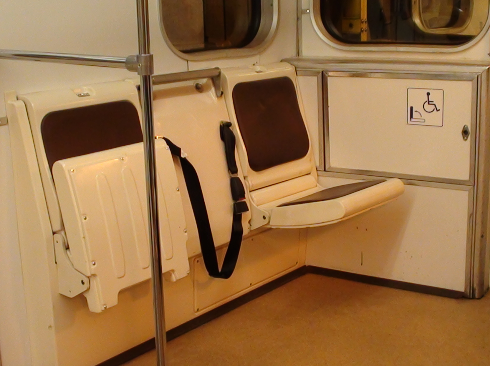 Ключевое слово ИДИОТЫ. Вместо перевода хорошего стандарта просто на русский язык и его применения, начинается изобретение особенного пути и бега по граблям. В итоге имеем то что имеем. Места для инвалидов в одной части вагона, а указатель в другой части вагона. Хотя указатель кстати правильно размещён, по хорошему места для инвалидов должны быть между первой и второй дверью.