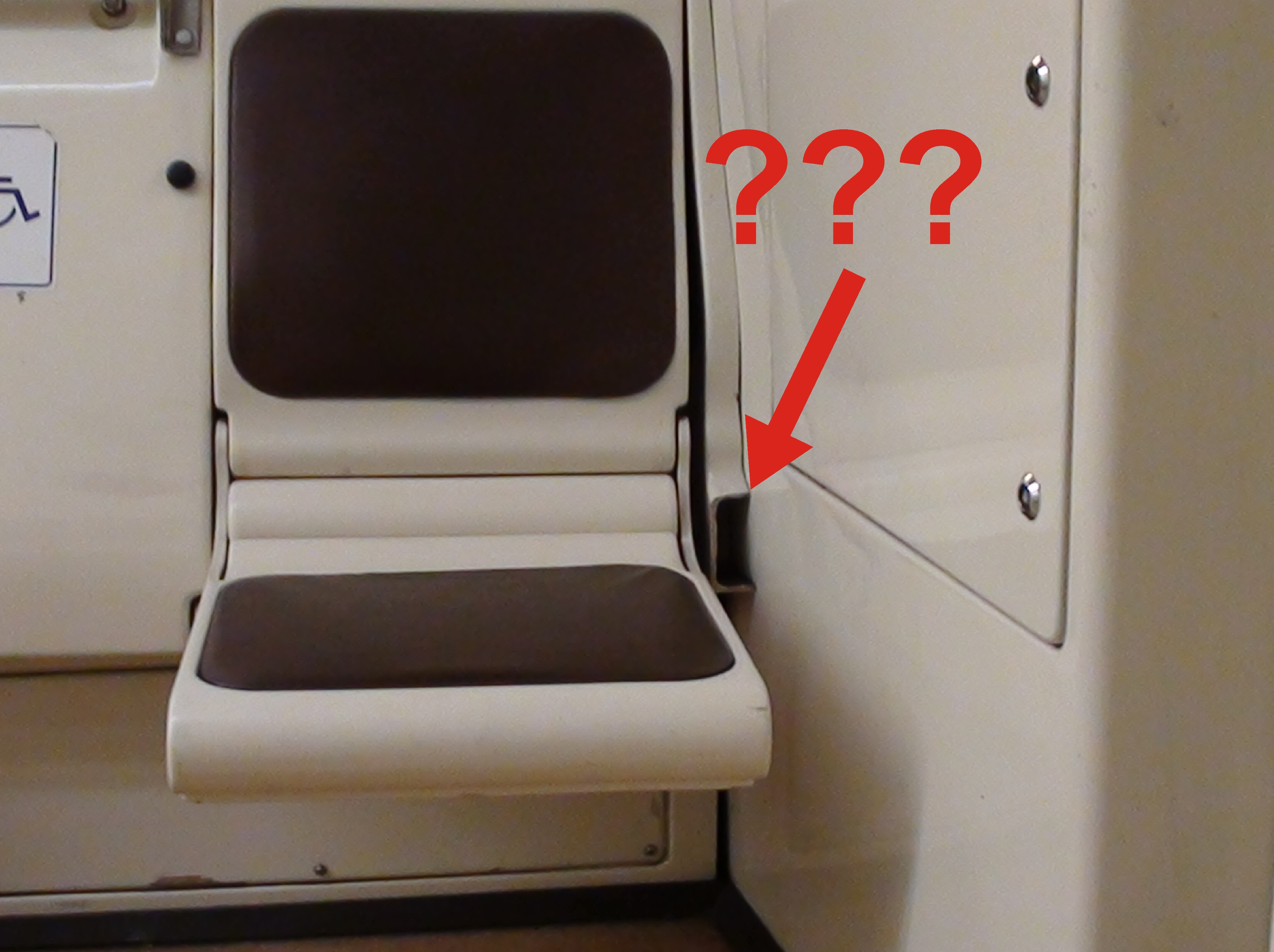 Ещё, такие откидные сиденья прогибаются (во всех вагонах). Видимо, не расчитаны, чтобы на них сидели. Не удивлючь, если ещё через пару лет они вовсе начнут отваливаться...