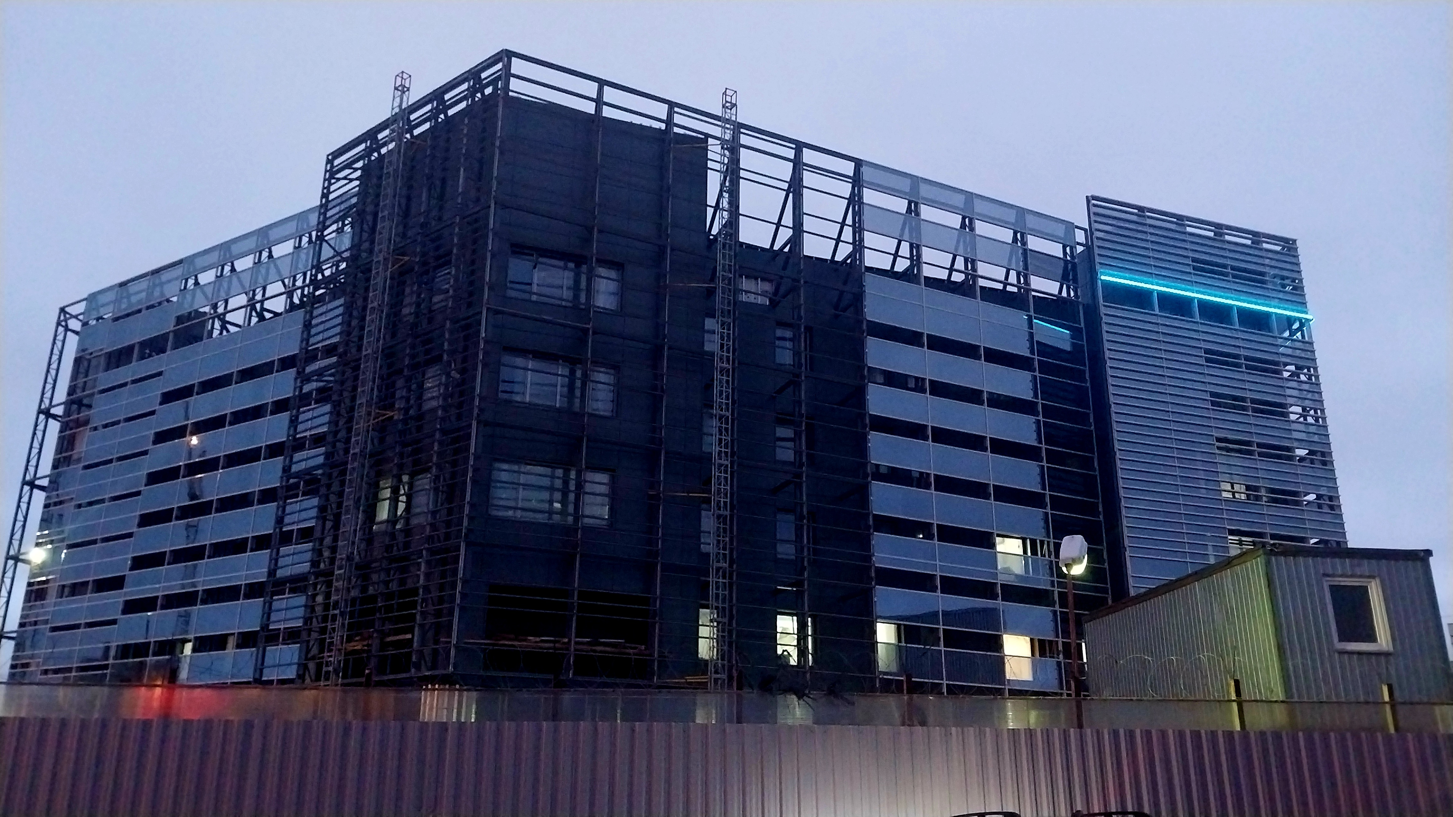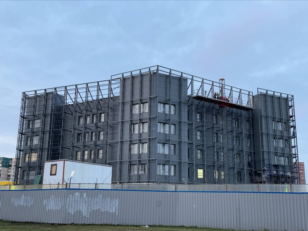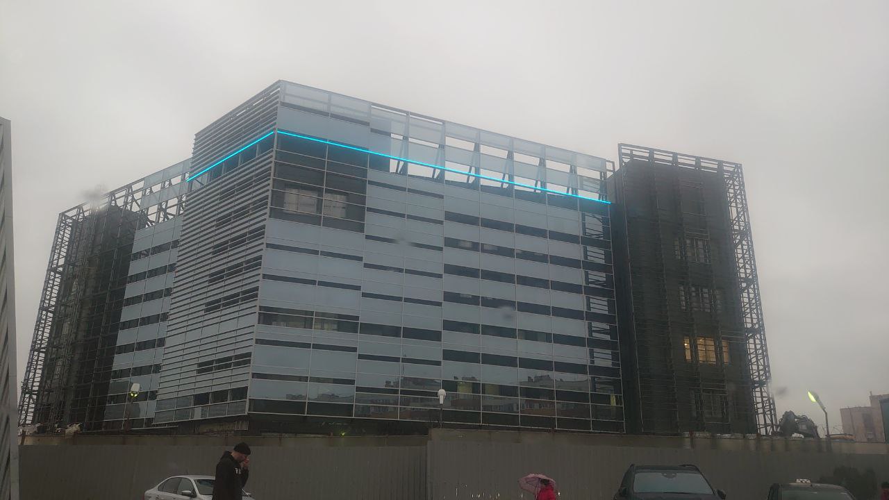 Продолжаются работы по монтажу вентилируемого фасада здания и фальш-фасада.