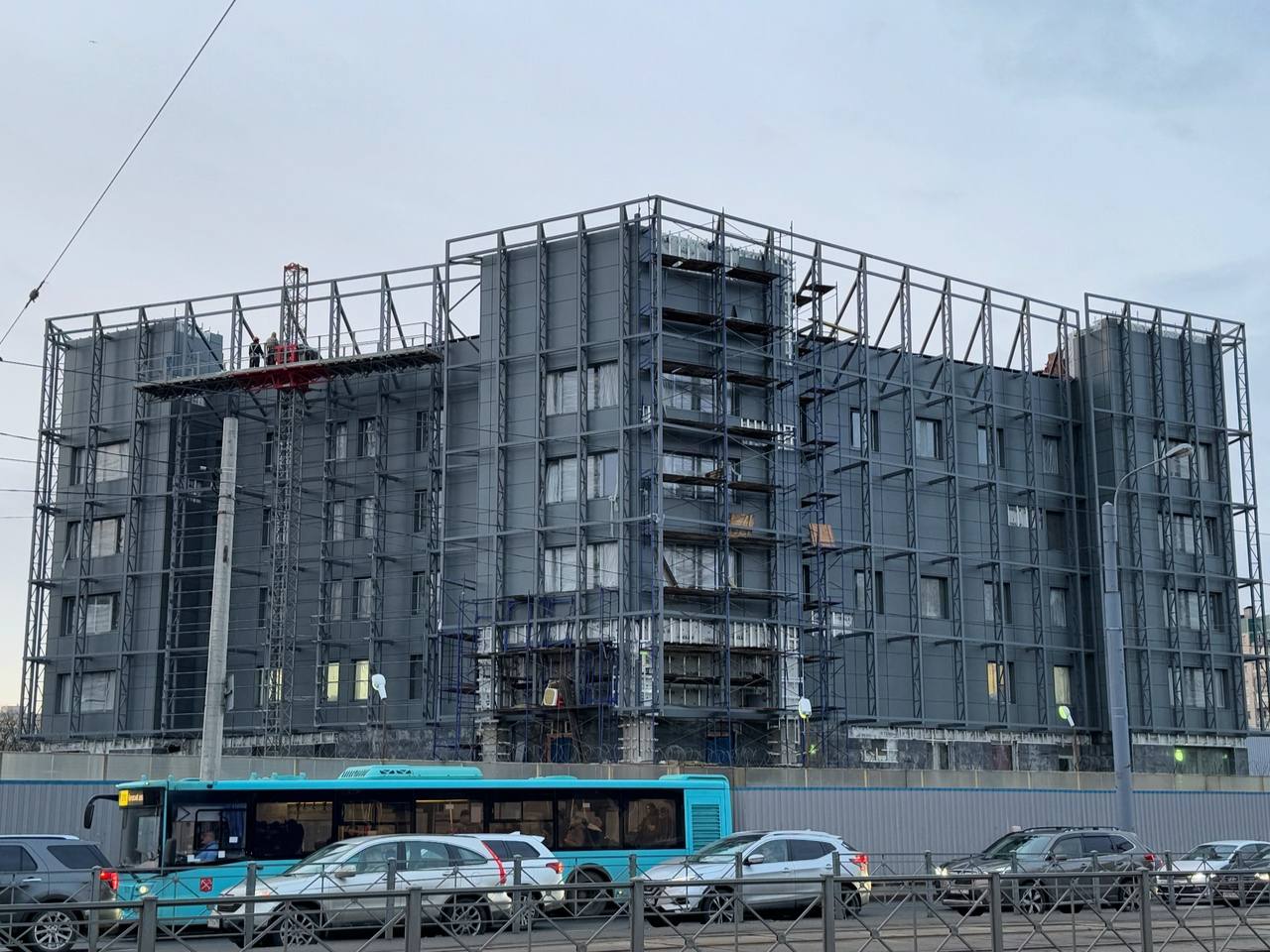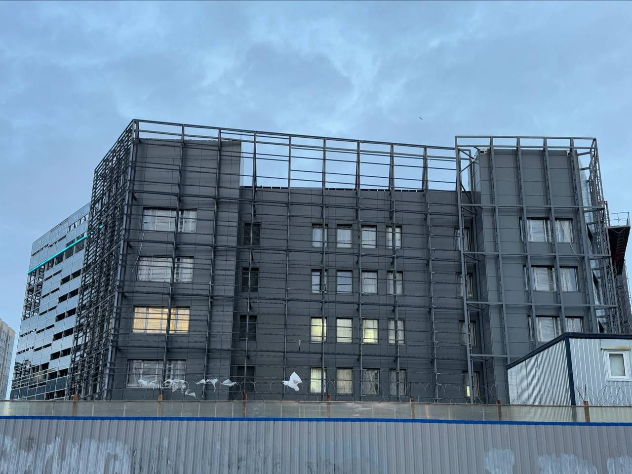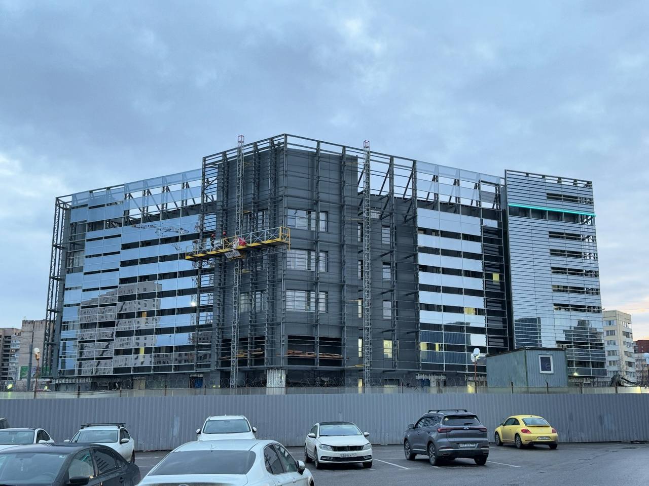 Продолжаются работы по монтажу вентилируемого фасада здания и фальш-фасада.