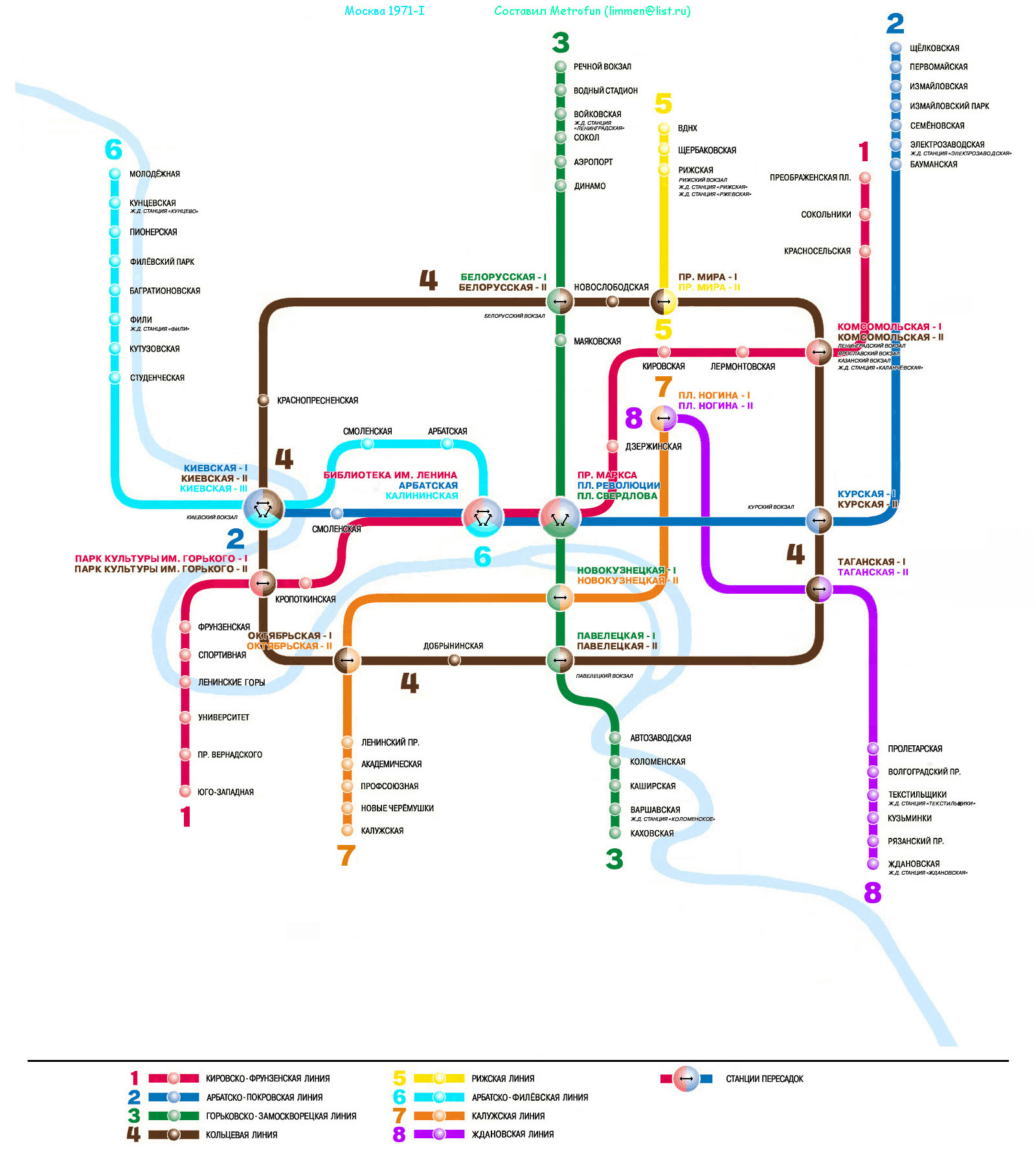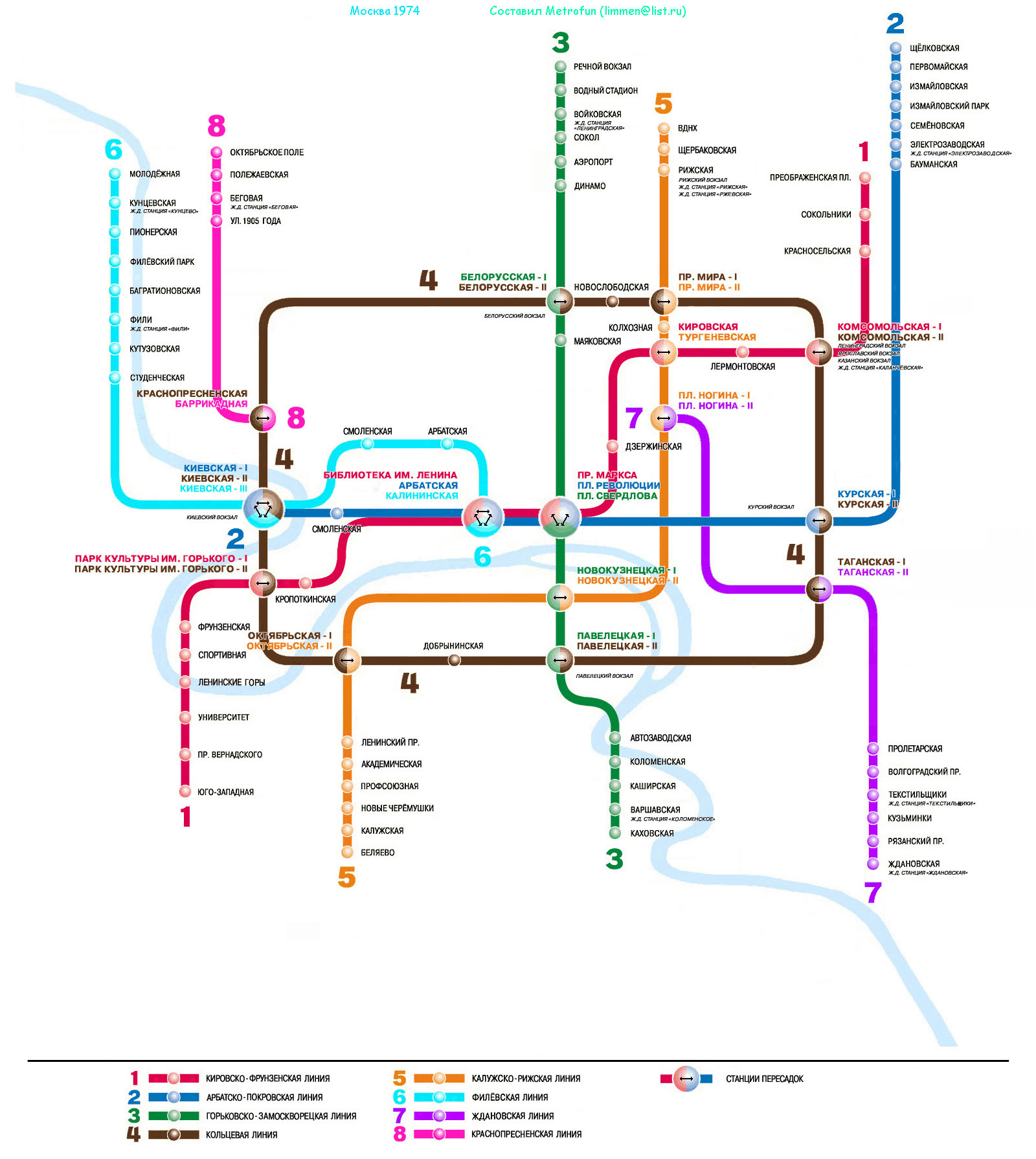За планерную спасибо! Я был невнимателен. Исправлю - выложу остальное... С нумерацией линий - такая петрушка, как у меня на схемах, а с 80 года - опять 2 линия-зеленая! Со станцией Стадион Народов - тоже согласен, только вот наводят на размышления следующие схемы, взятые с сайта Артемия Лебедева: