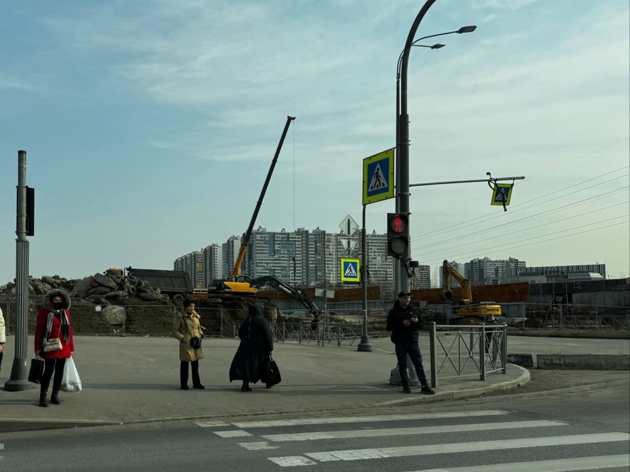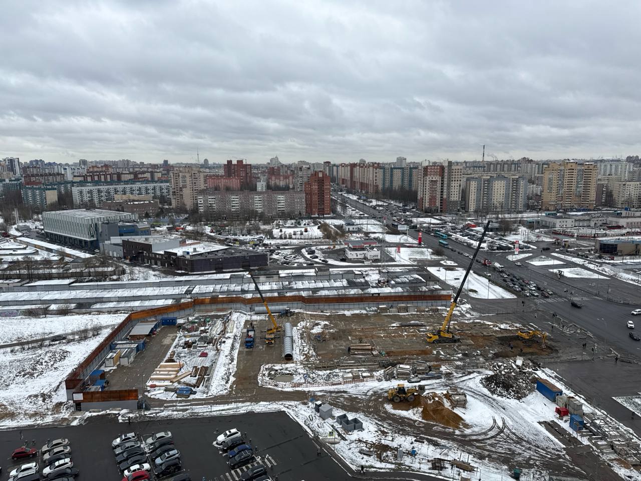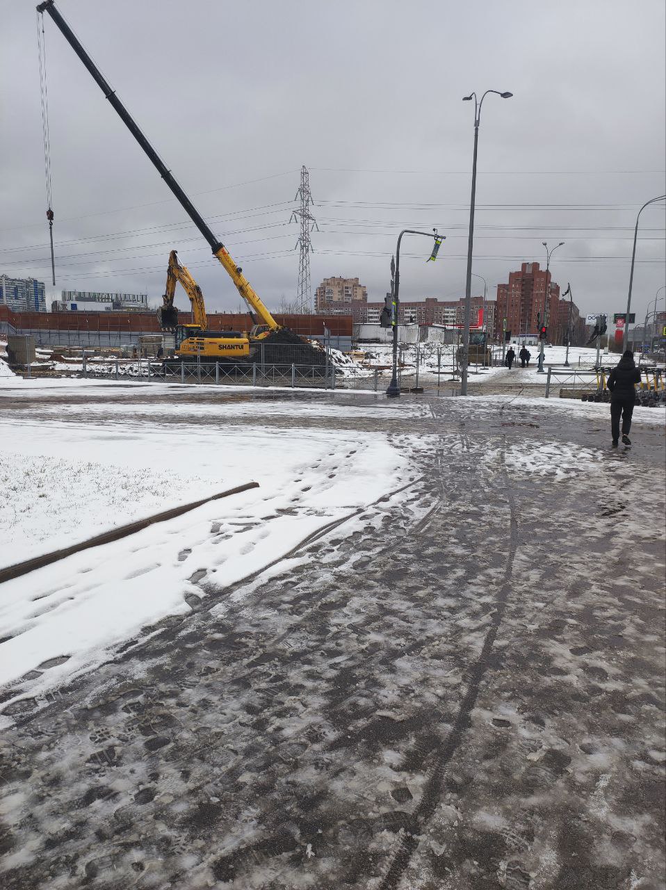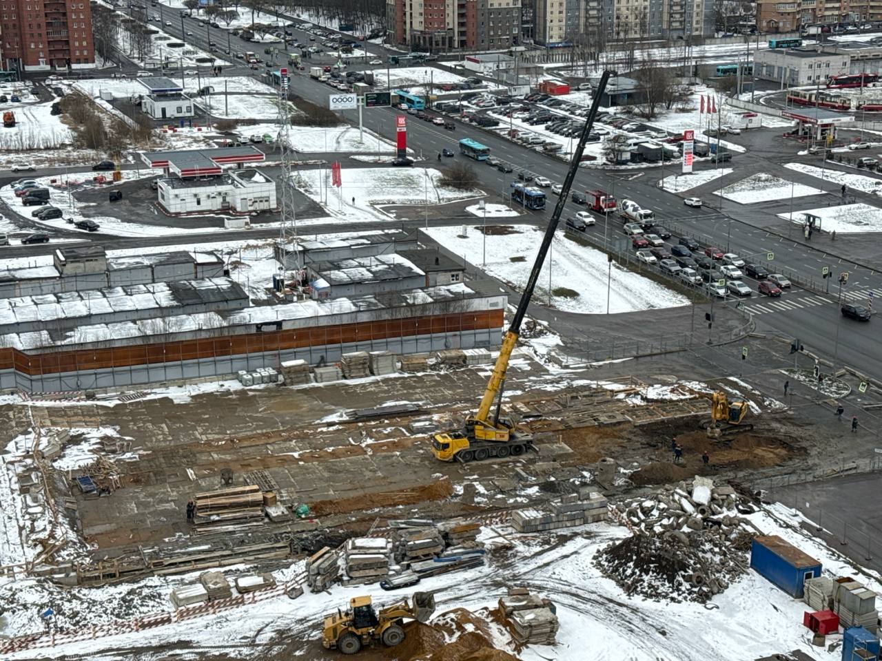 Сейчас западная часть строительной площадки находится на уровне Шуваловского проспекта, продолжение которого расположится прям над новой станцией метро.