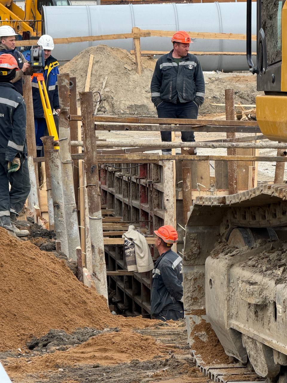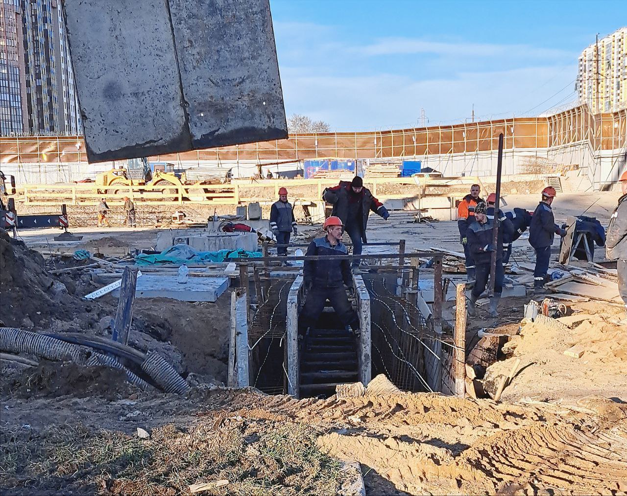 Также, идет сооружение форшахты для колонн, которые будут поддерживать распорный пояс во время разработки котлована внутри стены в грунте.